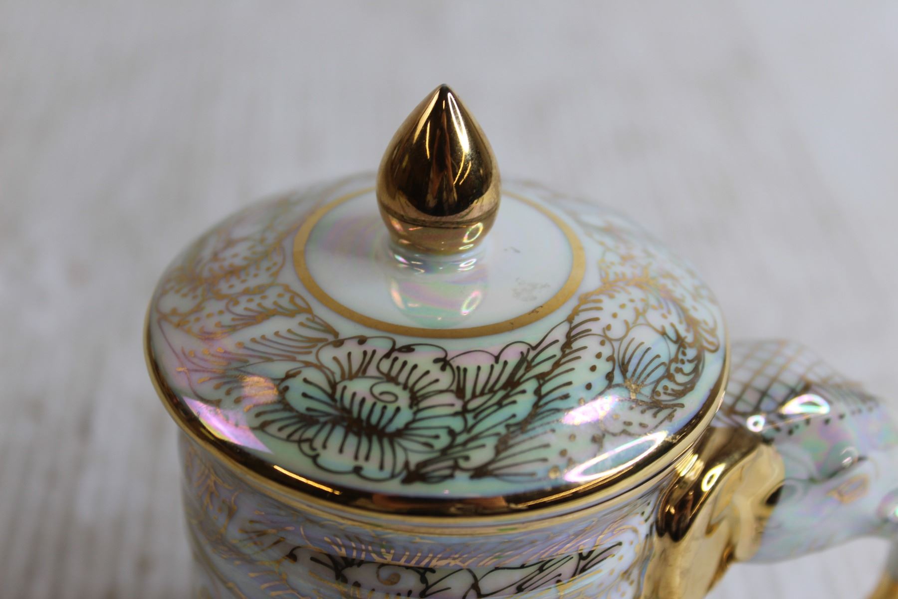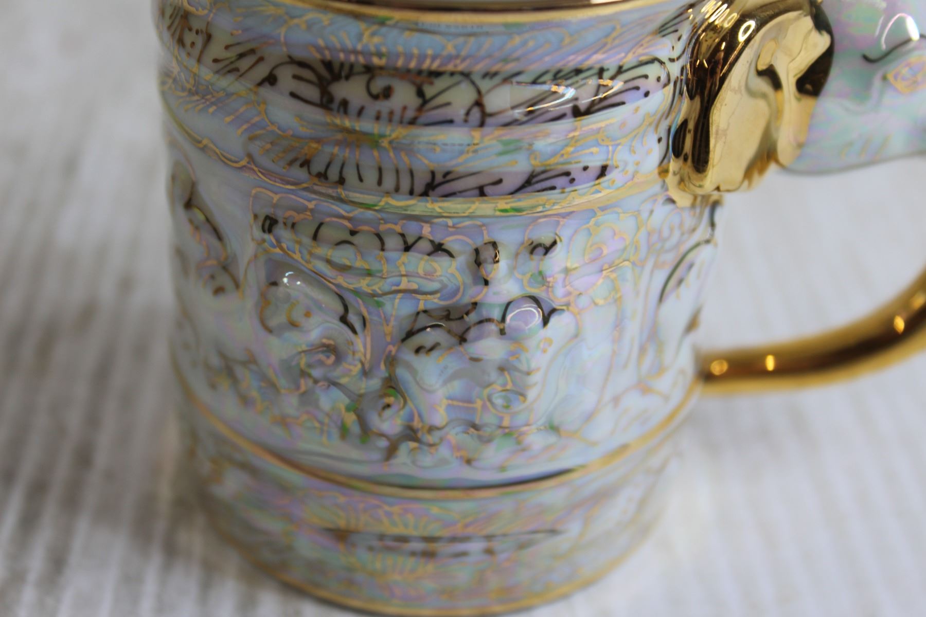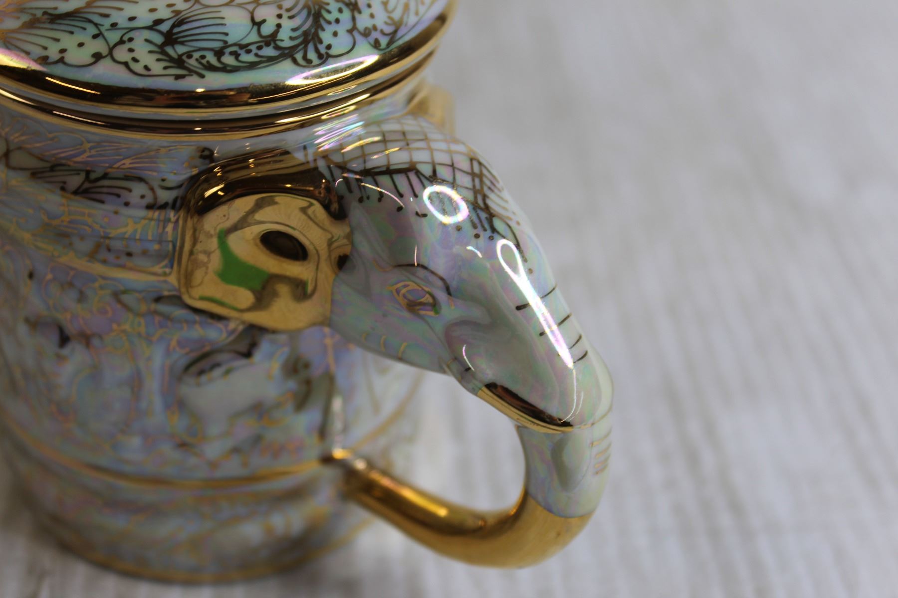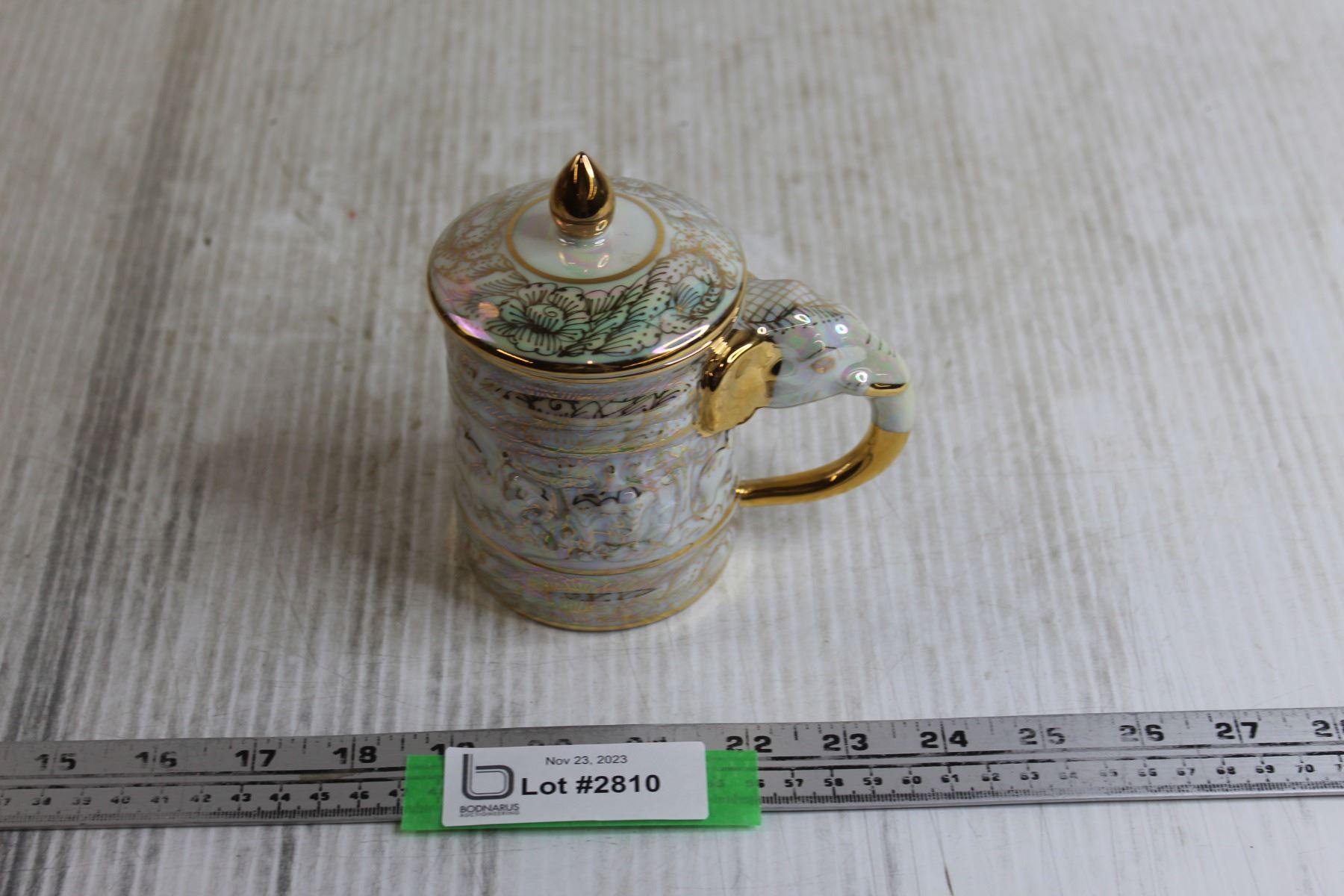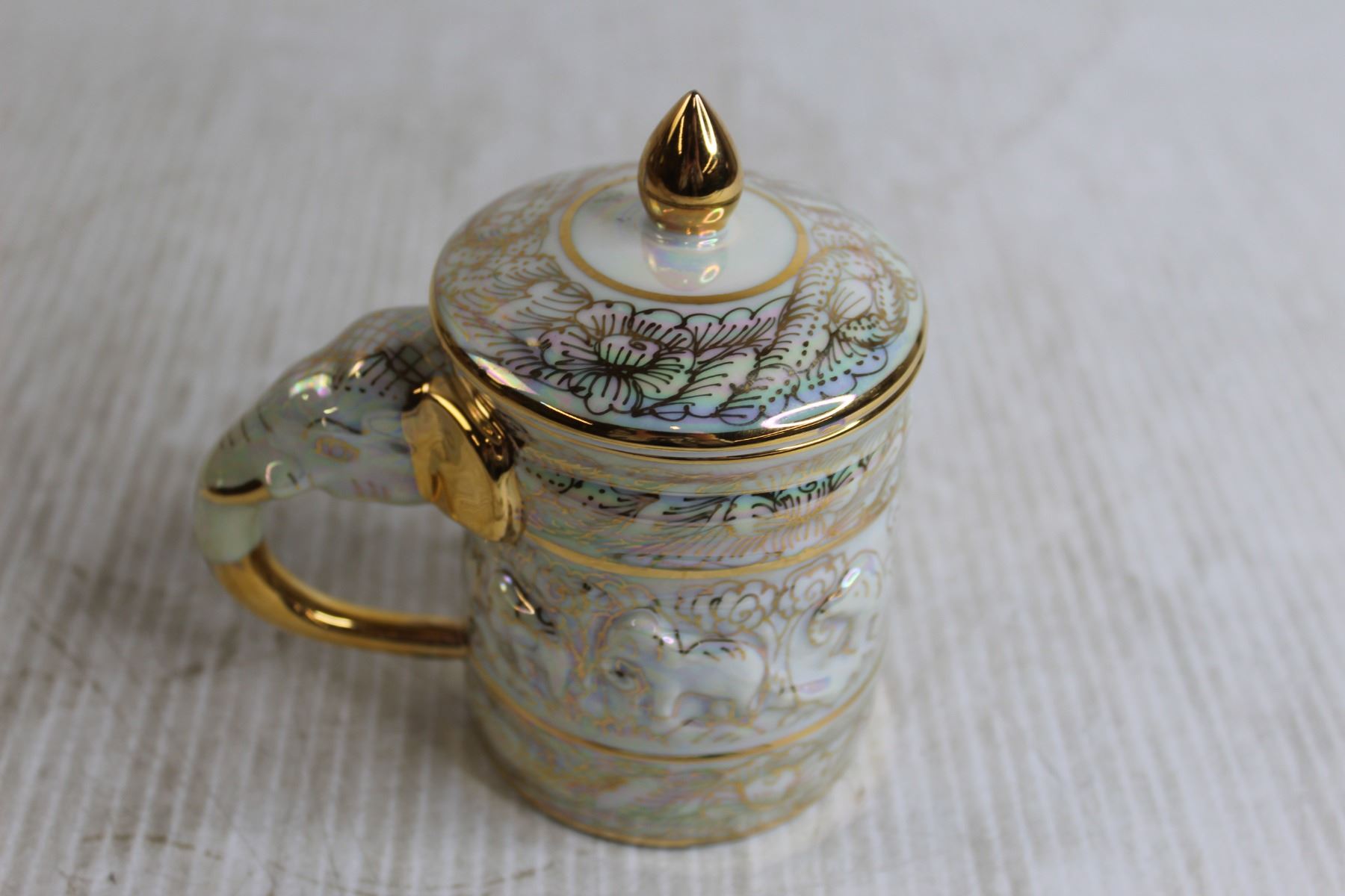 Hand-Decorated Teacup - Embossed Elephants and Handle