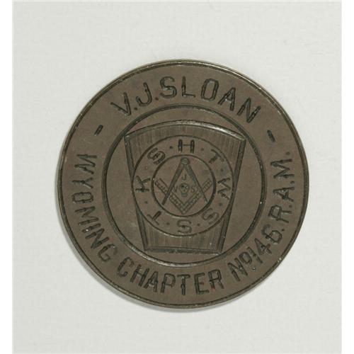 Hand-Engraved Masonic Chapter Penny, Wyoming. This is a