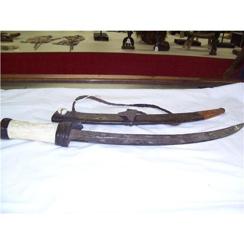 22" Overall With Carved Leather Scabbard With Shell Decoration