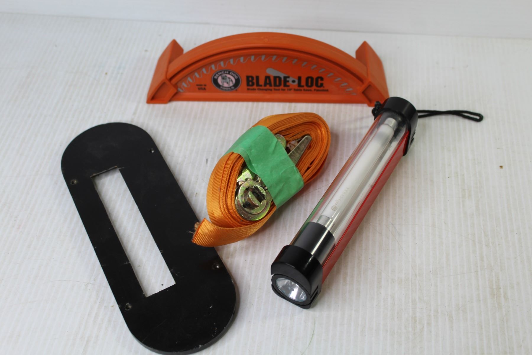Hand Held Light - Blade Lock Table Saw Blade Changing Tool - Table Saw Blade Guard - Ratchet Strap