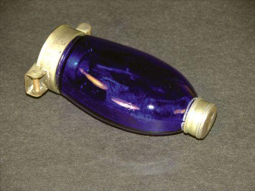 Hand Held Cobalt Blue Spittoon with trip release lid. No chips or cracks. 4 1/2 inches long.