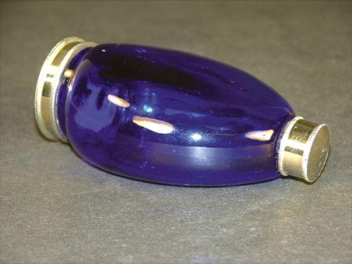 Hand Held Cobalt Blue Spittoon with trip release lid. No chips or cracks. 4 1/2 inches long.