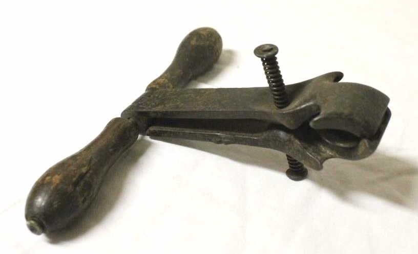 With wood handles. 6 " tall and 7 1/4" across handles.