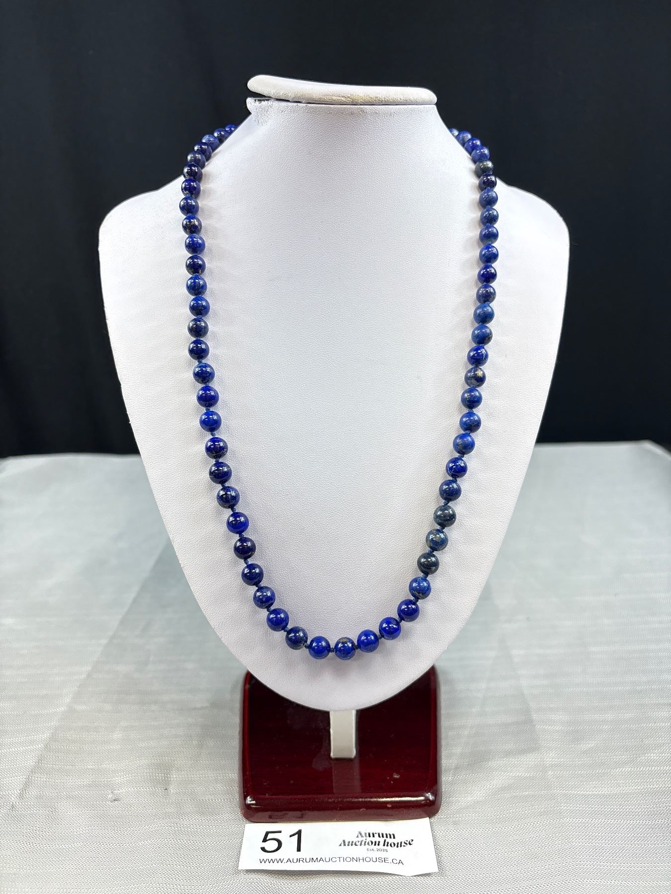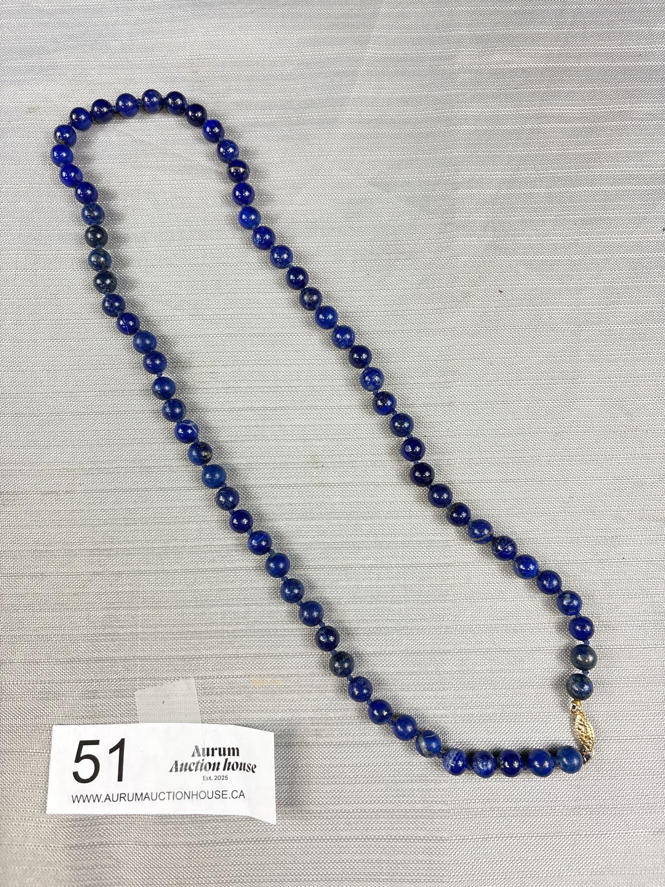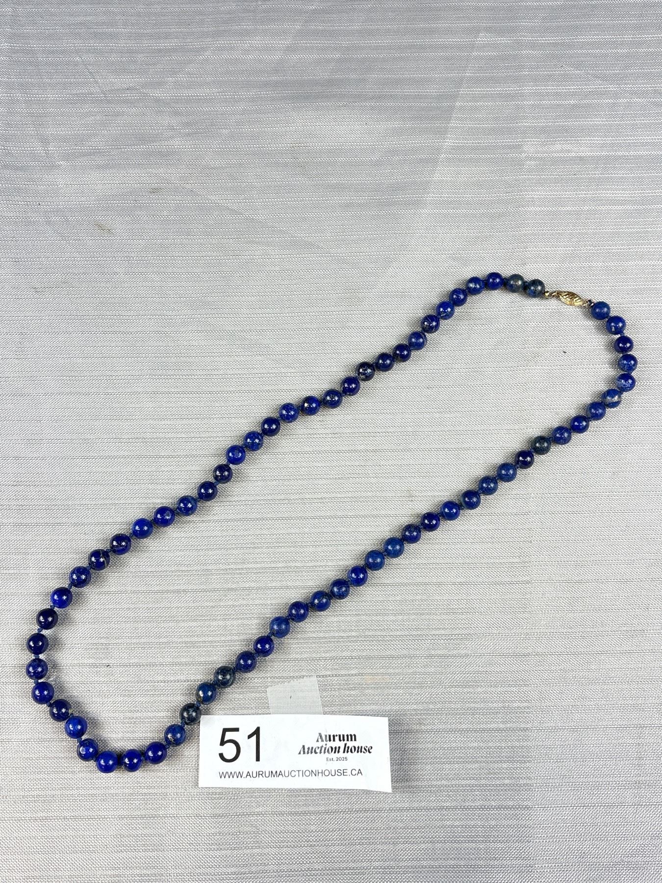 Hand Knotted Lapis Lazuli Necklace with 14k Clasp