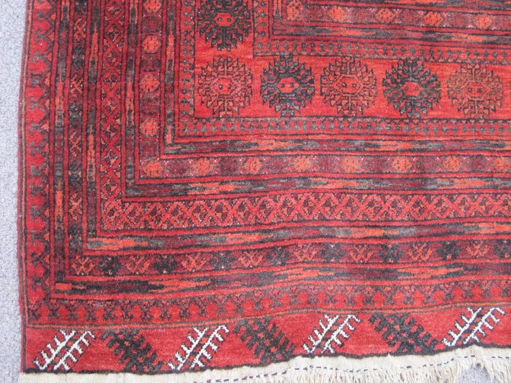 Rug: Handmade Semi Antique Wool on Wool Afghan Turkmen; Material: 100% Fine quality wool, all natural vegetable dye; Size: 9.0 x 6.8 feet; Foundation: Wool; Design: Turkmen; Origin: Afghanistan