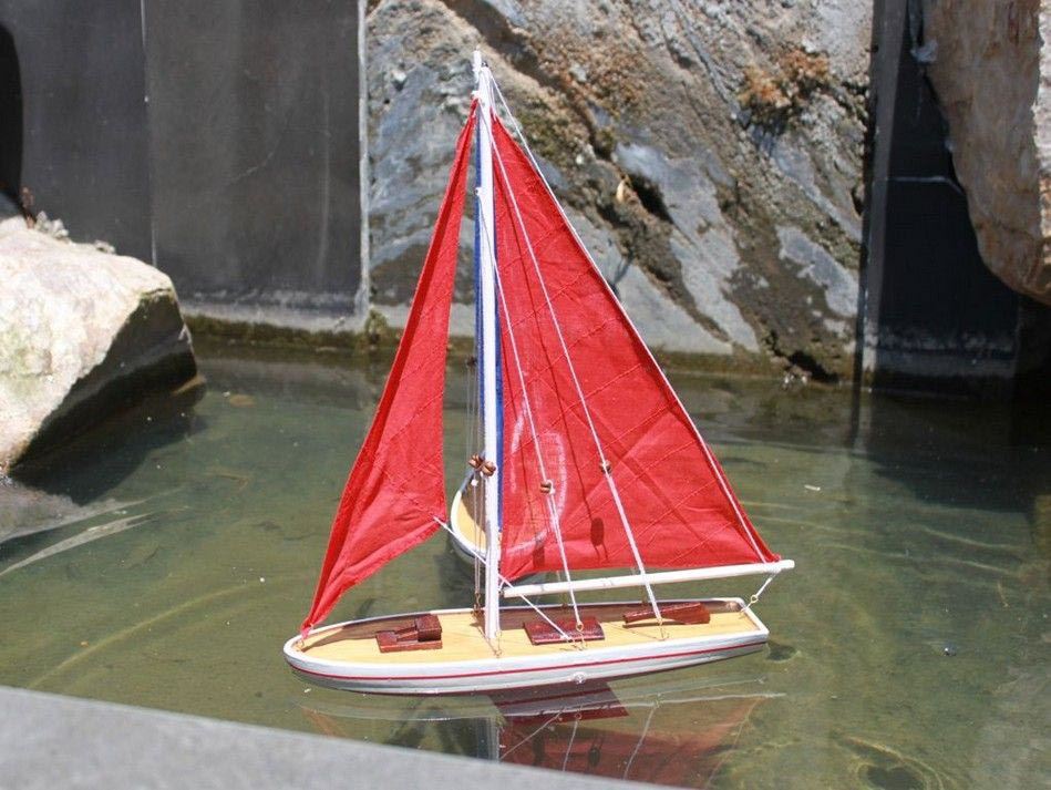 Hand Made 21" Red Floating Sailboat - Red Sails **|**|** Hand Made 21" Red Floating Sailboat - Red Sails