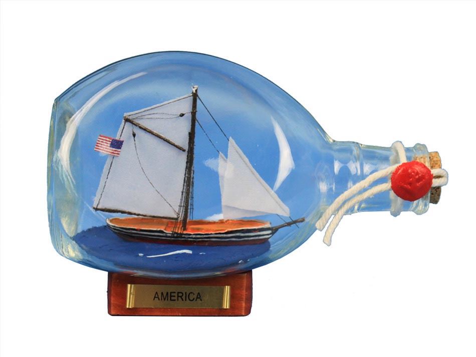Hand Made America Sailboat in a Bottle 7" **|**|** Hand Made America Sailboat in a Bottle 7"
