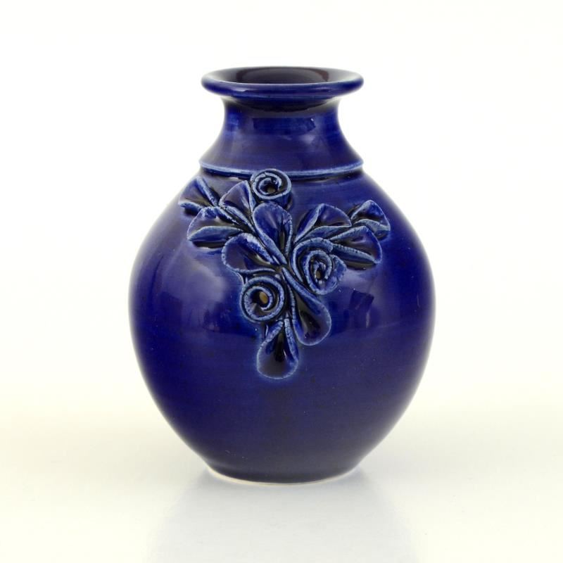 This is a hand made ceramic vase sculpture by noted folk artist Eugenijus Tamosiunas. Made with Lead-Free colors and glazes. Hand signed by the Artist. Measures approx. 2" (width) x 3" (height); .5" (opening).