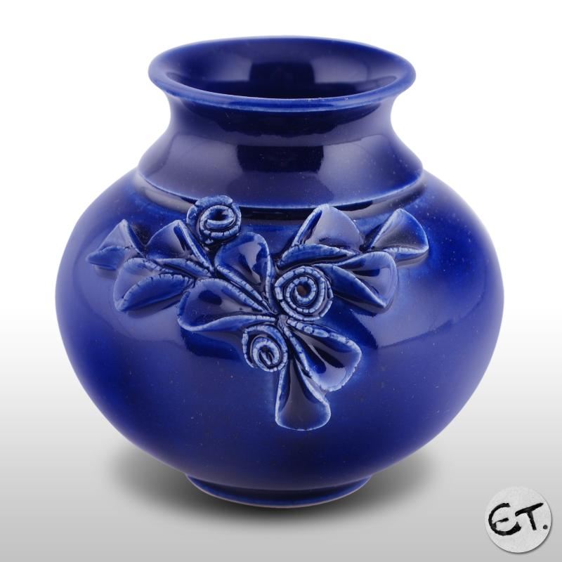 This is a hand made ceramic vase sculpture by noted folk artist Eugenijus Tamosiunas! Made with Lead-Free colors and glazes. Hand signed by the Artist! Measures approx. 3" (width) x 2.5" (height); 1" (opening).