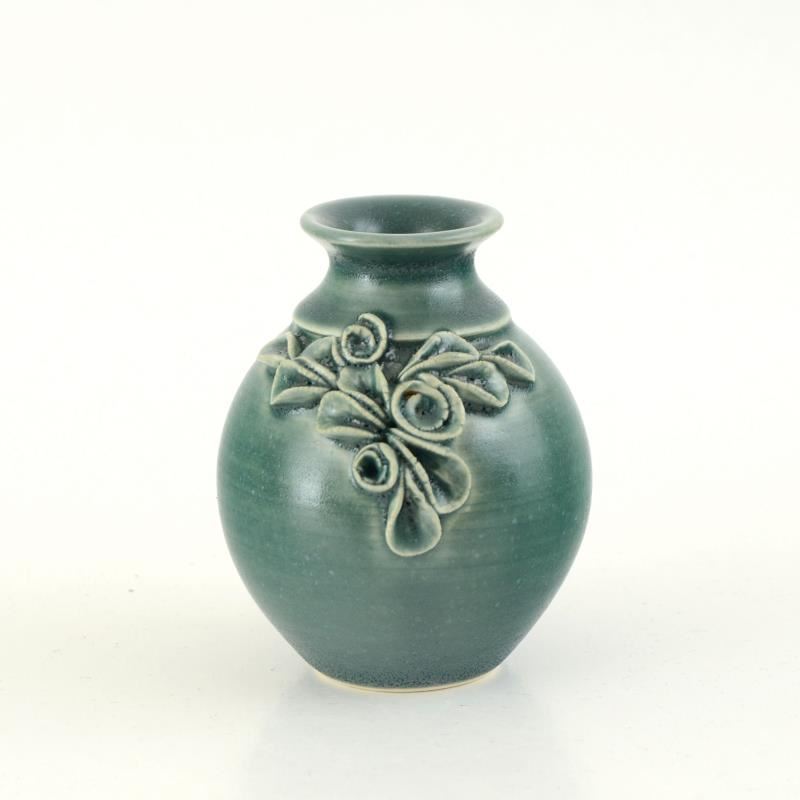 This is a hand made ceramic vase sculpture by noted folk artist Eugenijus Tamosiunas. Made with Lead-Free colors and glazes. Hand signed by the Artist. Measures approx. 2.5" (width) x 3" (height); .5" (opening).