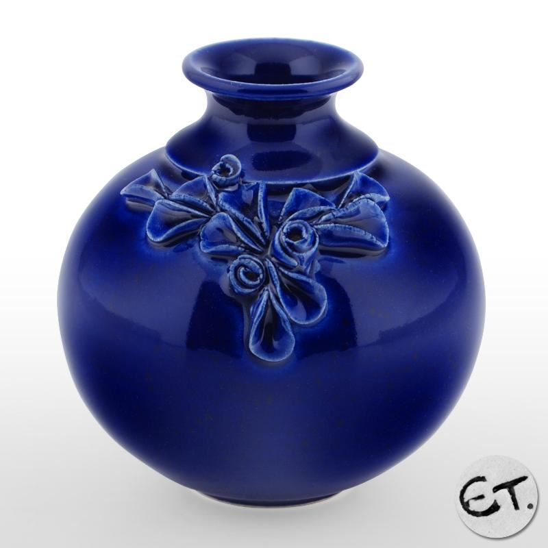 This is a hand made ceramic vase sculpture by noted folk artist Eugenijus Tamosiunas! Made with Lead-Free colors and glazes. Hand signed by the Artist! Measures approx. 3" (width) x 3" (height); 0.5" (opening).