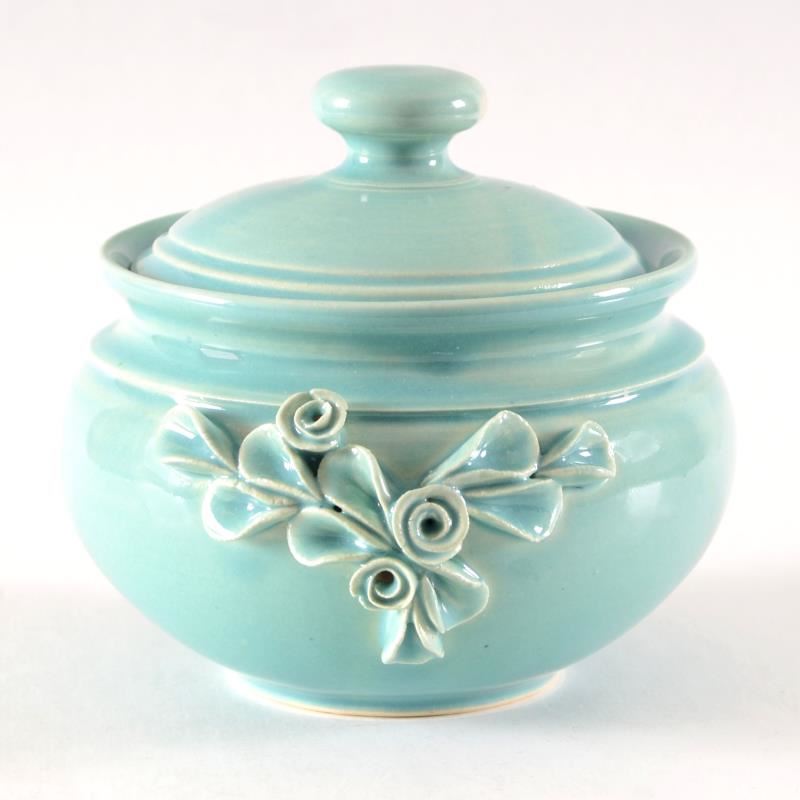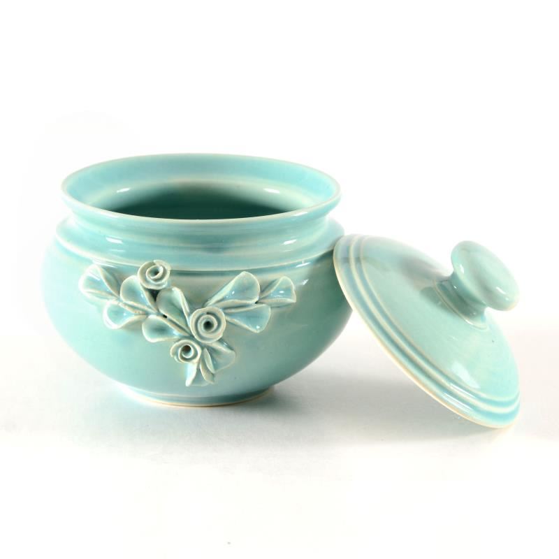 This is a hand made ceramic vase with lid sculpture by noted folk artist Eugenijus Tamosiunas. Made with Lead-Free colors and glazes. Hand signed by the Artist. Measures approx. 4" (width) x 3.5" (height); 3.5" (opening).