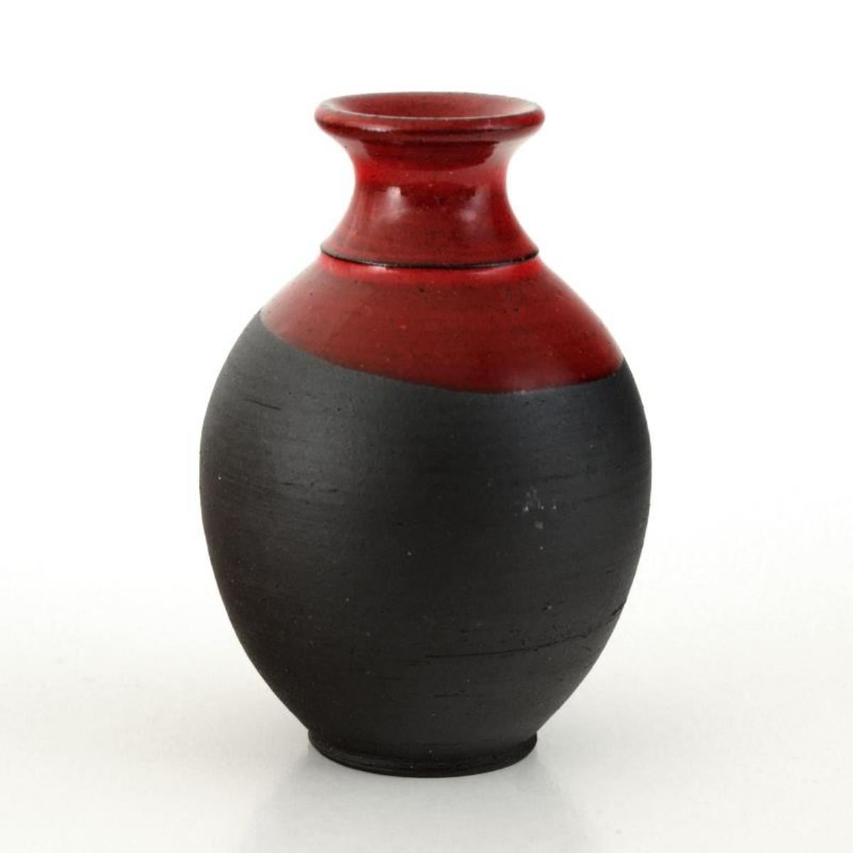 This is a hand made ceramic vase sculpture by noted folk artist Eugenijus Tamosiunas. Made with Lead-Free colors and glazes. Hand signed by the Artist. Measures approx. 2.5" (width) x 4" (height); .5" (opening).