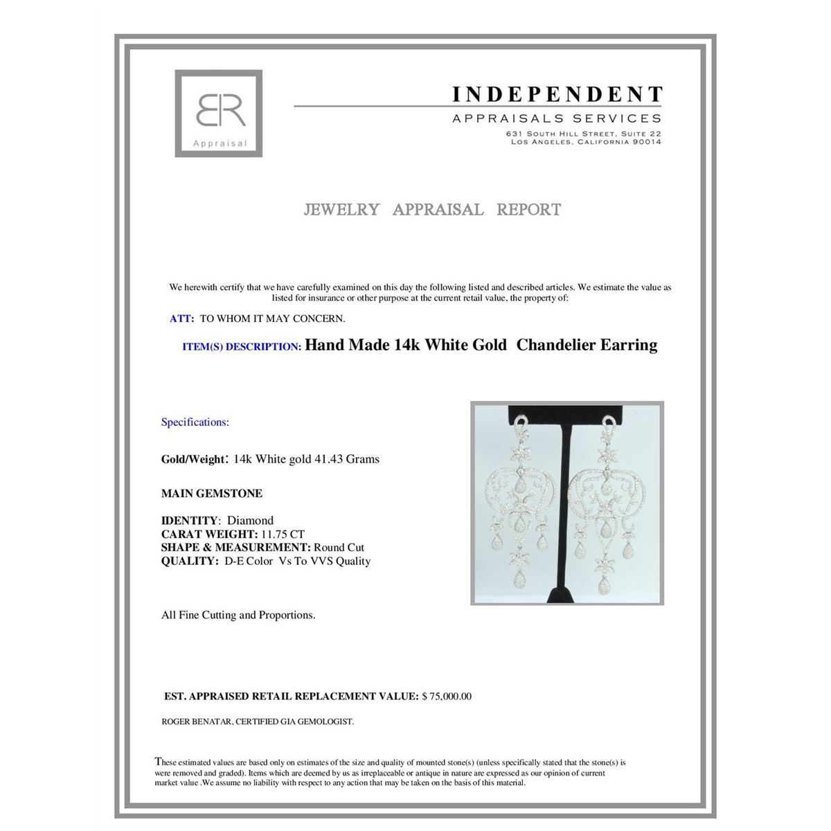 Hand Made Chandelier Earring 14K WHITE GOLD EARRING 41.43GRAM DIAMOND 11.75CT D-E COLOR VS TO VVS QUALITY