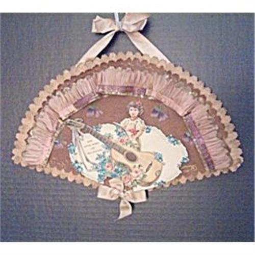 This is a card that any young man would have been thrilled to receive, but we're not sure they ever did... there is no inscription to or from. It has a ribbon from which it was to be hung. It has a young girl (who has her head taped in place) with a guitar and a greeting that says "with loving wishes and true affection". This center piece was made to stand out and needs to be restored, the silk ruching is old and brittle, but still in place, though some of the tape or ribbon covering the bottom is missing but could be repaired... It is a collectible that you could be very proud of even in its present condition, and restored it would be FABULOUS!!! Order three of anything that can be shipped in one container, pay with PayPal and shipping is FREE!