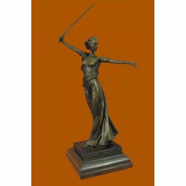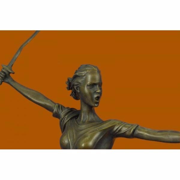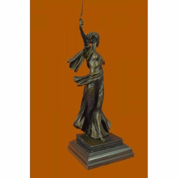 Athena is one of the most benevolent Greek goddesses. She is the quintessential "career woman" of the goddesses unswayed by Aphrodite's spells. She is strong, loyal, and possess an elegant beauty. She is depicted here in her helmet and long robes holding her spear. Athena was known as the Goddess of War serving as a great mediator and planner. This tall sculpture is perfect to inspire female strength and achievement. The sculpture was crafted using the lost wax method. It stands on a black marble base. It is signed R.Langer. Condition : This sculpture is in perfect condition. Bronze Dimensions with Marble Base:Height 19" x Width 11" Marble Dimensions:6" X 6" Height without base: 17" Weight : 13 LBS Inventory:37YRD13166073