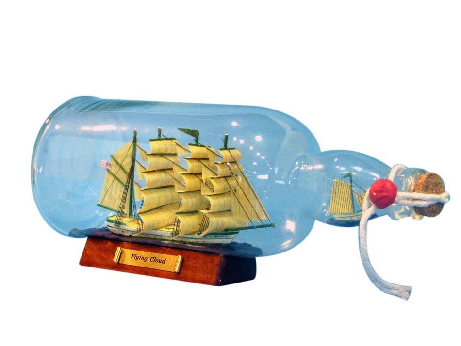 Hand Made Green Flying Cloud Ship in a Bottle 11" **|**|** Hand Made Green Flying Cloud Ship in a Bottle 11"