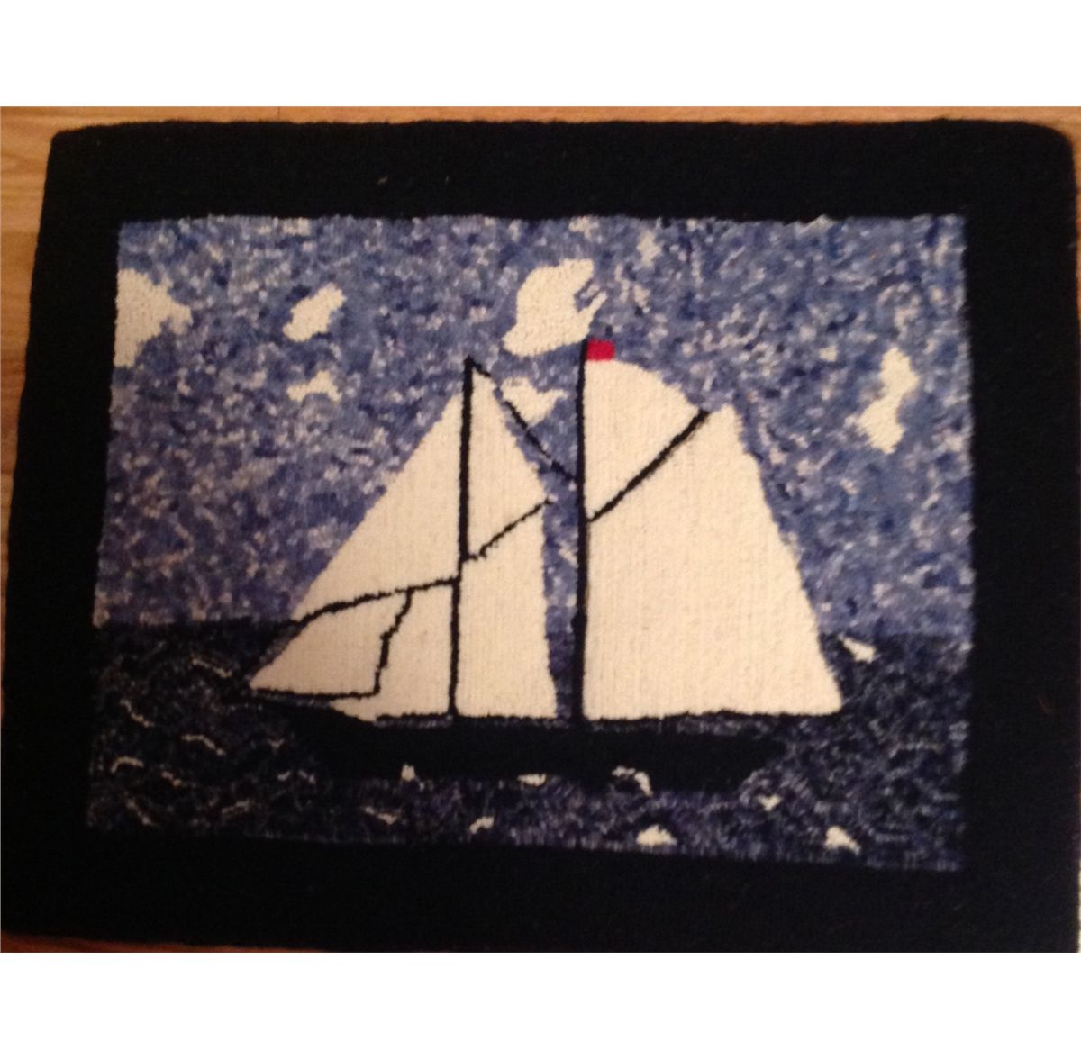 Hand made hooked rug of the Blue Nose sailing ship of Nova Scotia, Canada.