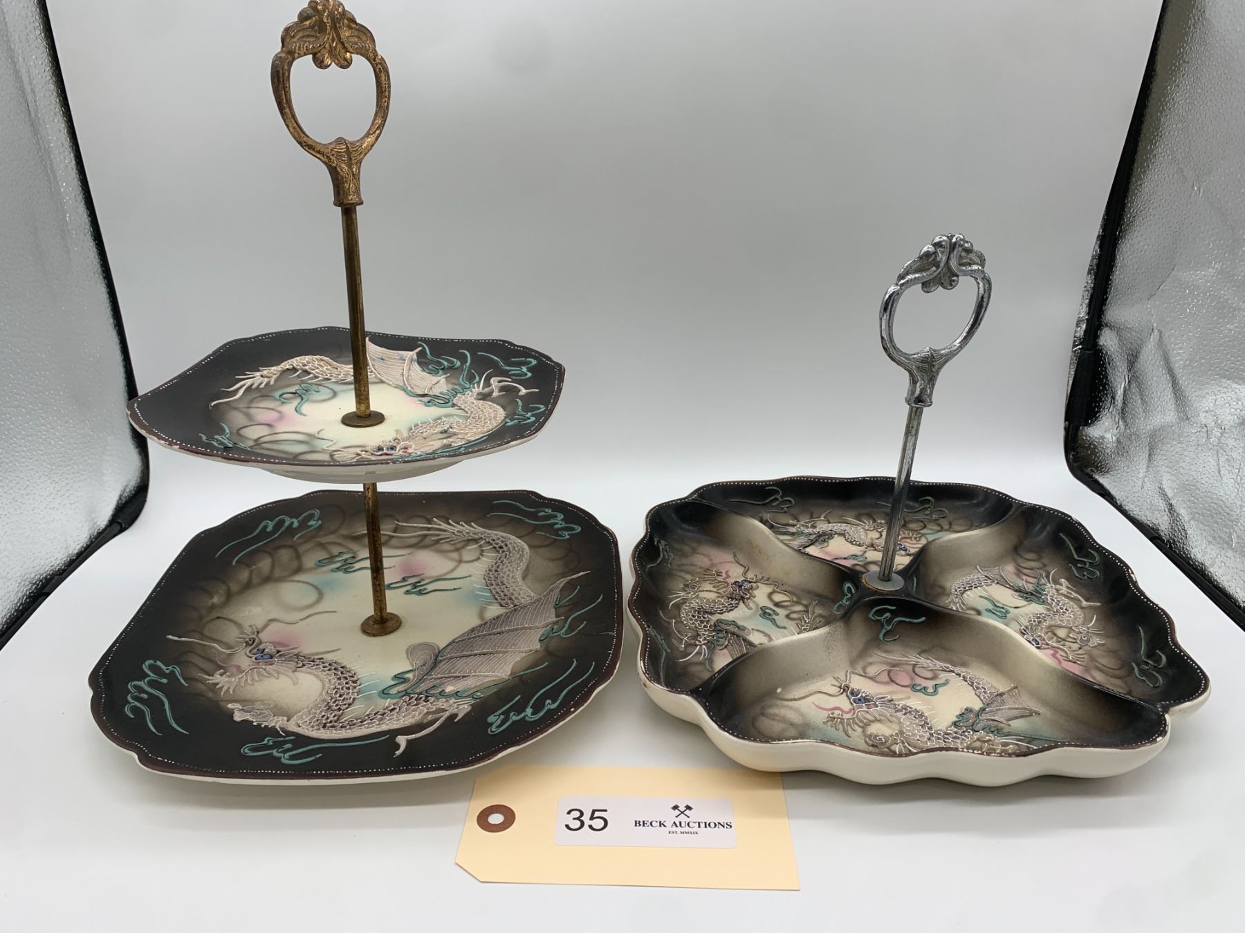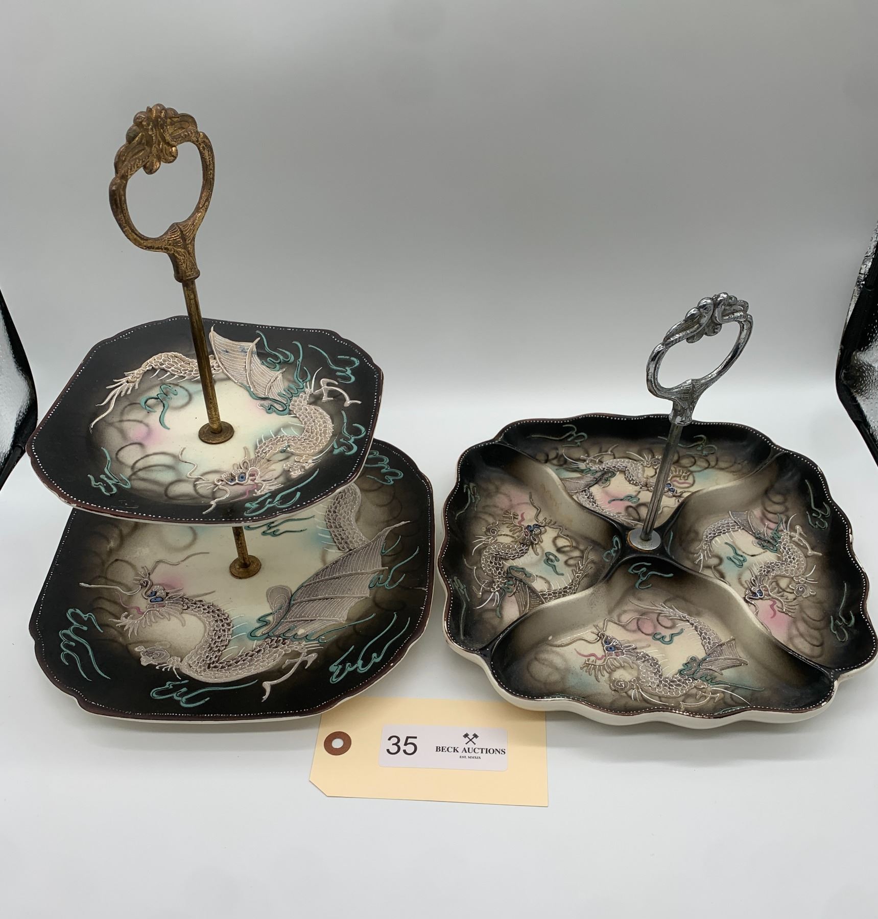 Hand Made Japanese Dragonware Tea Service Sandwich Platters Lot of Two