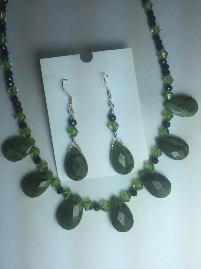 Natural Jade Neckless Set with Earrings,.....main stone Jade....shape - Tear Drop/pear; jade average sizes..16 x 10 mm; total jade stones in necklace 7 plus 2 jade stones in earrings; Necklace Length 18 Inch; Made in Canada .....Healing Properties of Jade5 Benefits–Including 1 Proven Scientifically!........Even though we are adopting practices like acupuncture and drinking green tea, Westerners tend to be a little bit skeptical of ancient medicinal practices–especially when it comes to healing with crystals and gemstones.Some say, “It’s just a rock!” while others insist they can’t go anywhere without their rose quartz (known for promoting love and healing).Personally, I’m neutral. What I care about is results. That’s why when I heard that the gemstone jade actually relieves pain, I immediately went into research mode.Here’s what I found…In ancient lore, cultures from the Chinese to the Aztecs prized jade even higher than gold for its beauty. The Chinese revered jade for its ability to bring about health, wealth, and longevity. Ancient shamans also believed jade could treat kidney and adrenal gland disorders.Jade is claimed by some to:Aid in detoxification by strengthening the body’s filtration and cleansing systemsBoost the immune systemImprove the heart, lungs, and thymusStimulate Qi–what the Chinese call your “life force”Granted, I’ve found no “real” proof for these healing properties, but again I’m all about results. If wearing a beaded jade belt keeps you off kidney dialysis, by all means wear one.However, I discovered at least one scientifically proven healing property of jade.There is one property that has been clinically tested and proven to benefit your health in an enormous way. In fact, as soon as I discovered it, I tripped all over myself to get this information to you as fast as possible.Why? Because it’s going to forever change the way you treat your pain. Here is the one ultimate, scientifically proven health benefit of jade:Jade is a phenomenal conductor of far infrared heat!…Okay, so that may not seem like amazing and helpful news to you just yet. But just wait... When you find out exactly how to apply jade stones heated with far infrared waves, I promise, you’ll never look at pain the same way again.I’m sure you’ve heard of infrared before–infrared cameras and photography, especially. Far infrared has a longer wave than that of infrared. It can’t be seen–only experienced as heat. This type of wave is responsible for the deep-penetrating heat you soak up when you lay out in the sun, but without the harmful UV rays. Far infrared heat is isolated and has no dangerous effects whatsoever.It turns out, jade and far infrared heat get along extremely well, and your aching back or chronically cold feet are going to benefit from it! Jade stones absorb the FIR waves and distribute them evenly and continuously better than almost any other material.With proper application, hot jade stones have been proven to relieve:above article from.....http://www.losethebackpain.com/healing-properties-of-jade/