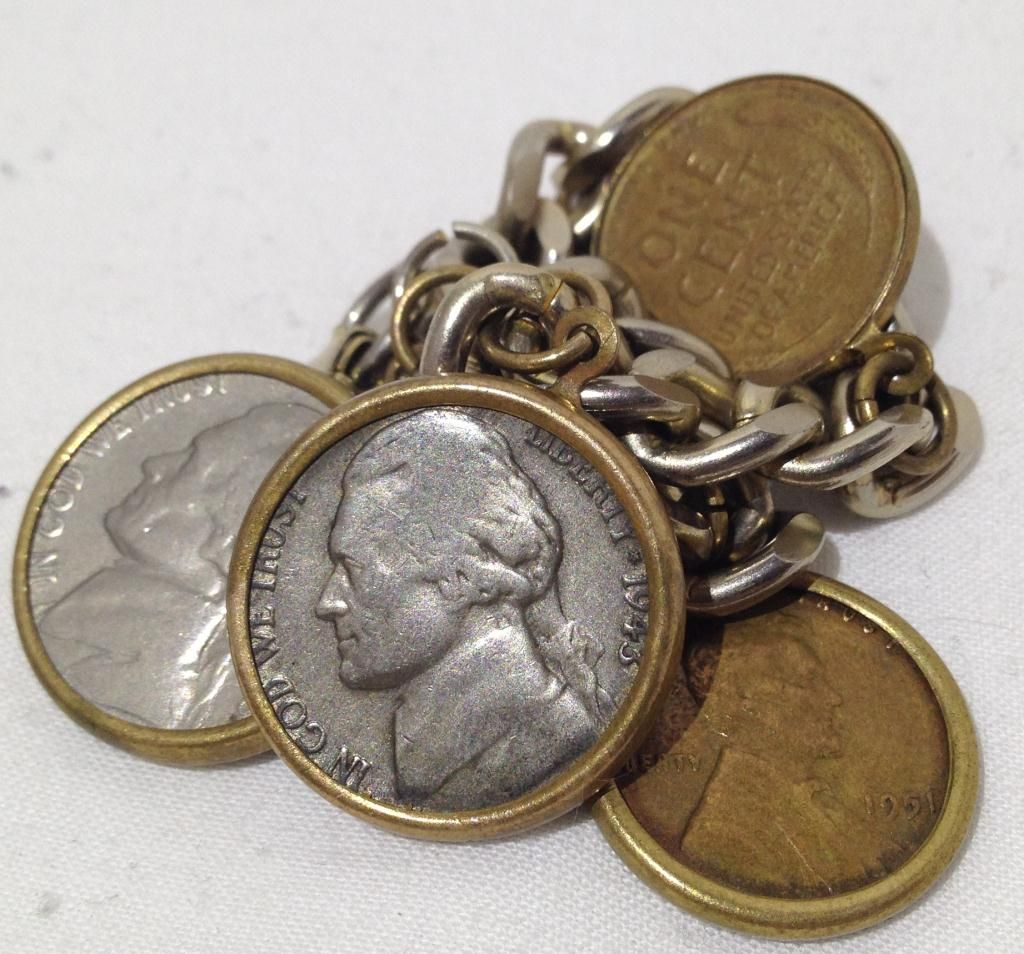 2) 1951 Lincoln Wheat Cents, 1)1952-D Lincoln Wheat Cent. 1) 1943-P War Nickel 1)1946 Jefferson Nickel