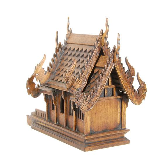 Used in Thai Buddhism to house free roaming spirits in nature (and keep them out of the main residence); 20" X 17"; stained dark handcarved teak
