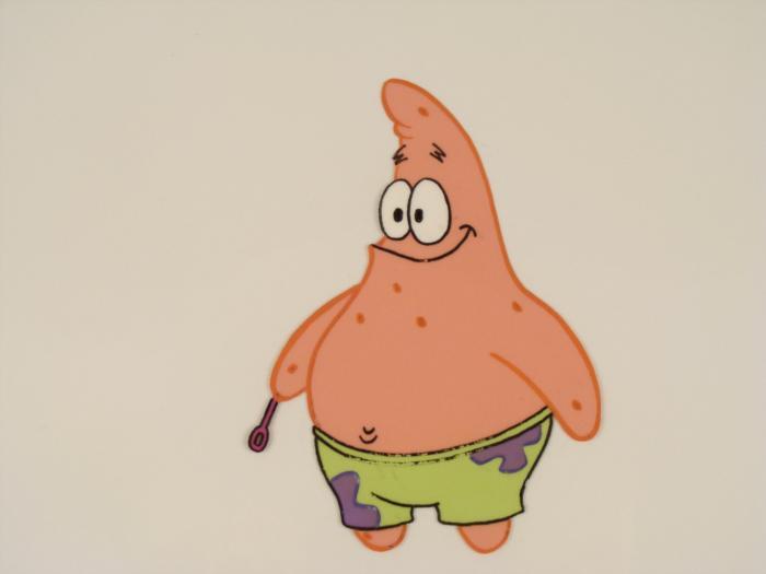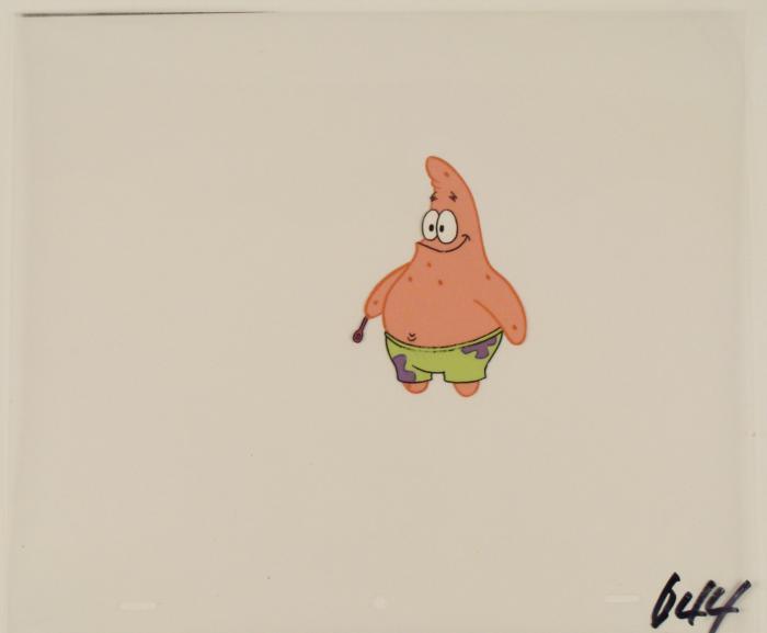 To create production cels, the original animator's drawing is transferred onto an acetate cel (by hand-inking and/or photo copying). The cel is then hand-painted on the reverse side. The cel received by the winning bidder may be ever so slightly different from the one in the auction photos. The cel is ready to be matted and framed. The animator's notations are at the bottom of the cel. There is slight paint fade to Patrick's outline.