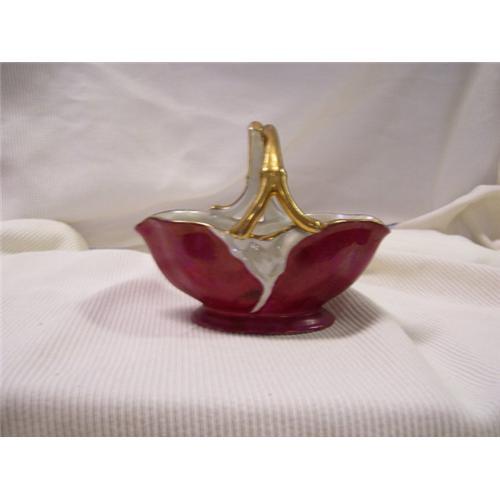 Presentation Baslet hand painted porcelain color red and white hand painted gold overlay. It says on the bottom TO: MRS. Swanson FROM: Marion Drake, In Appreciation of your kindness, 1956! 7x3w x 5 tall. Has no chips or cracks!