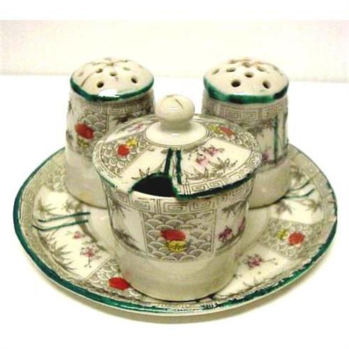 <tr><td><font size="2" face="Arial, Helvetica, sans-serif"><strong><font color="#000033">Title:</font></strong>Hand Painted CONDIMENT Set</font></td></tr>