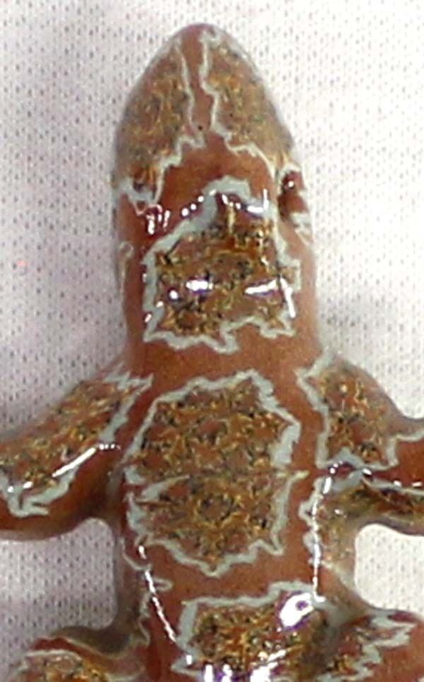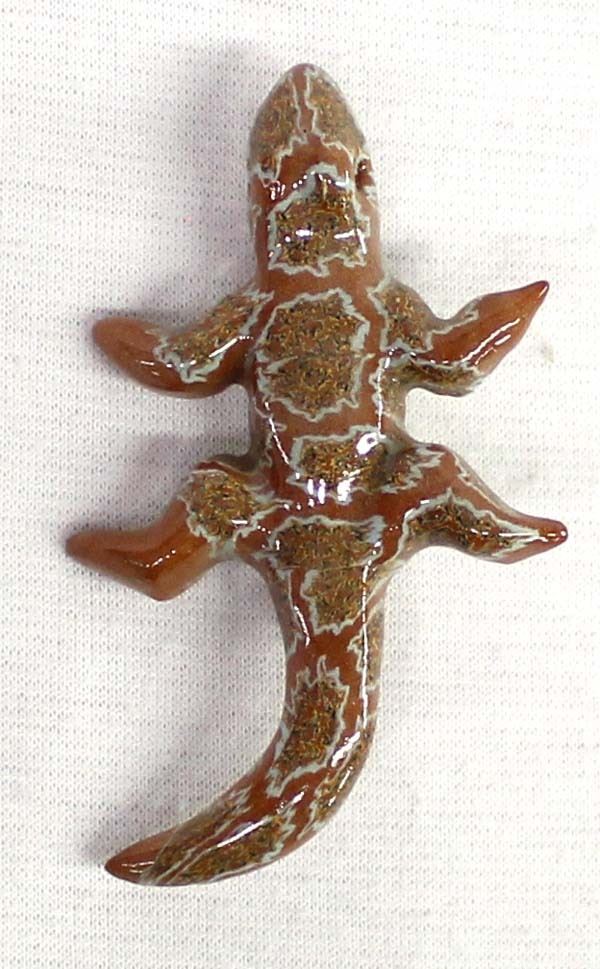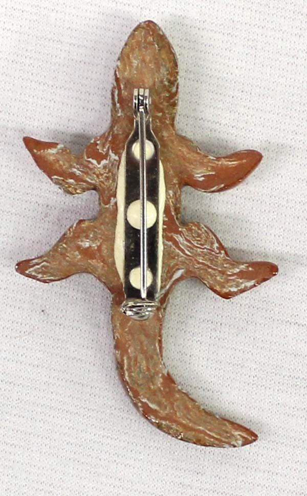 Hand Painted Ceramic Pottery Lizard Pin, measures 1'' x 2.5''