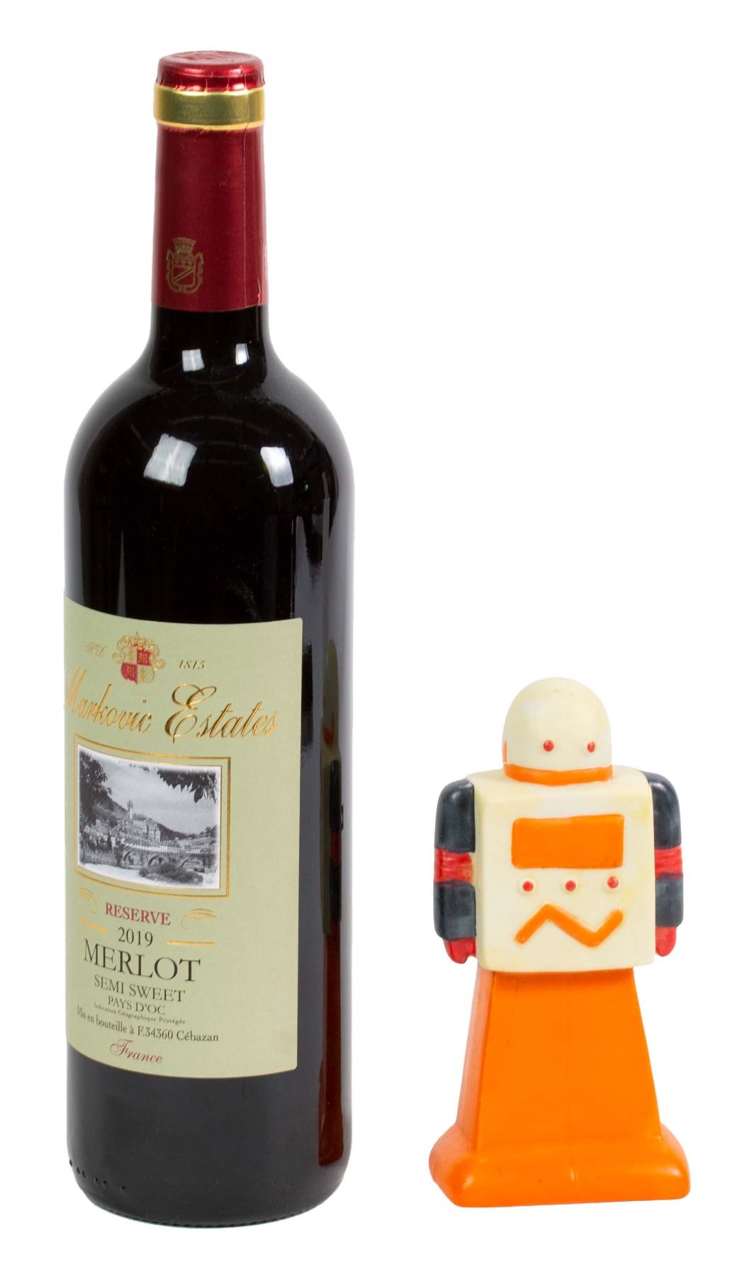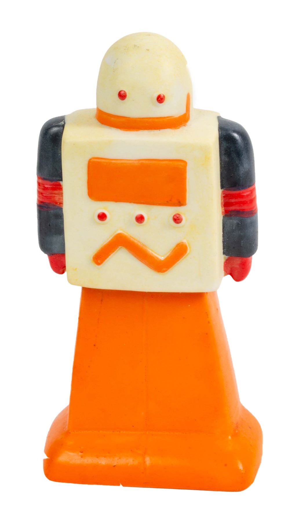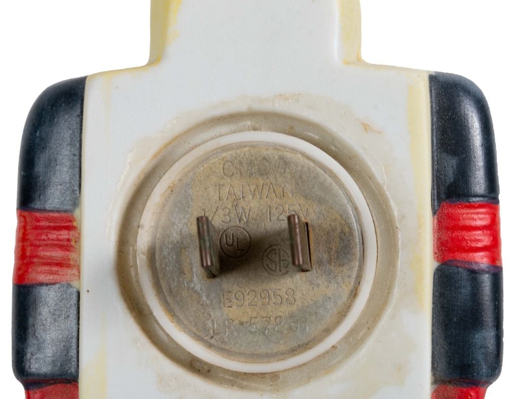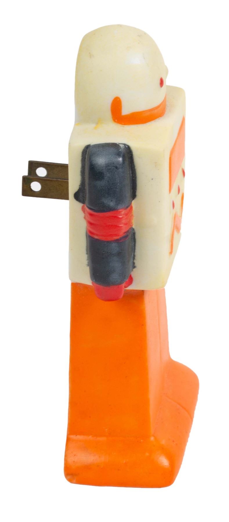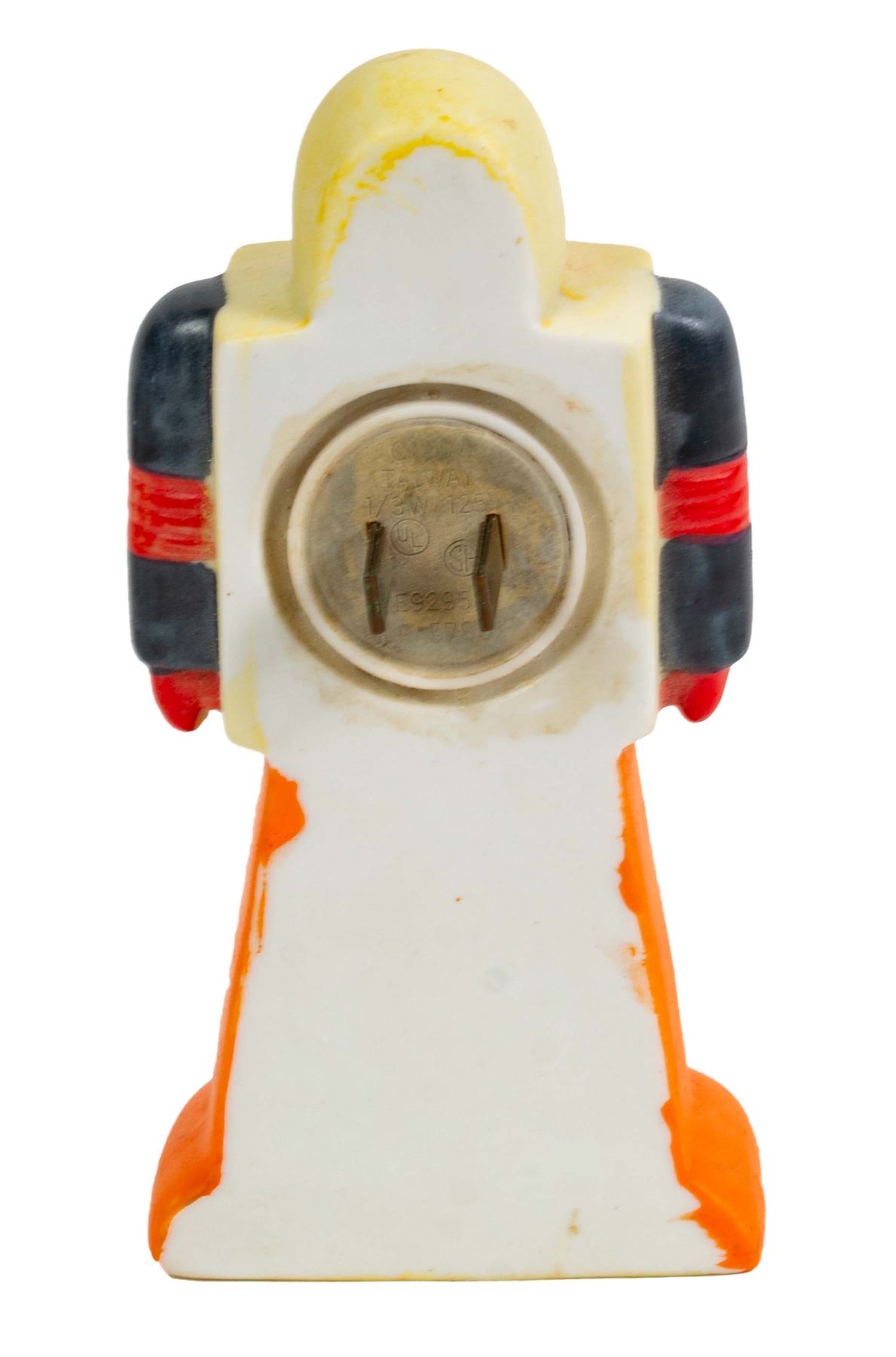 Item/Description: Painted pottery robot as a nightlight. No noticeable markers marks or signature on ceramic. Actual light fixture is marked.