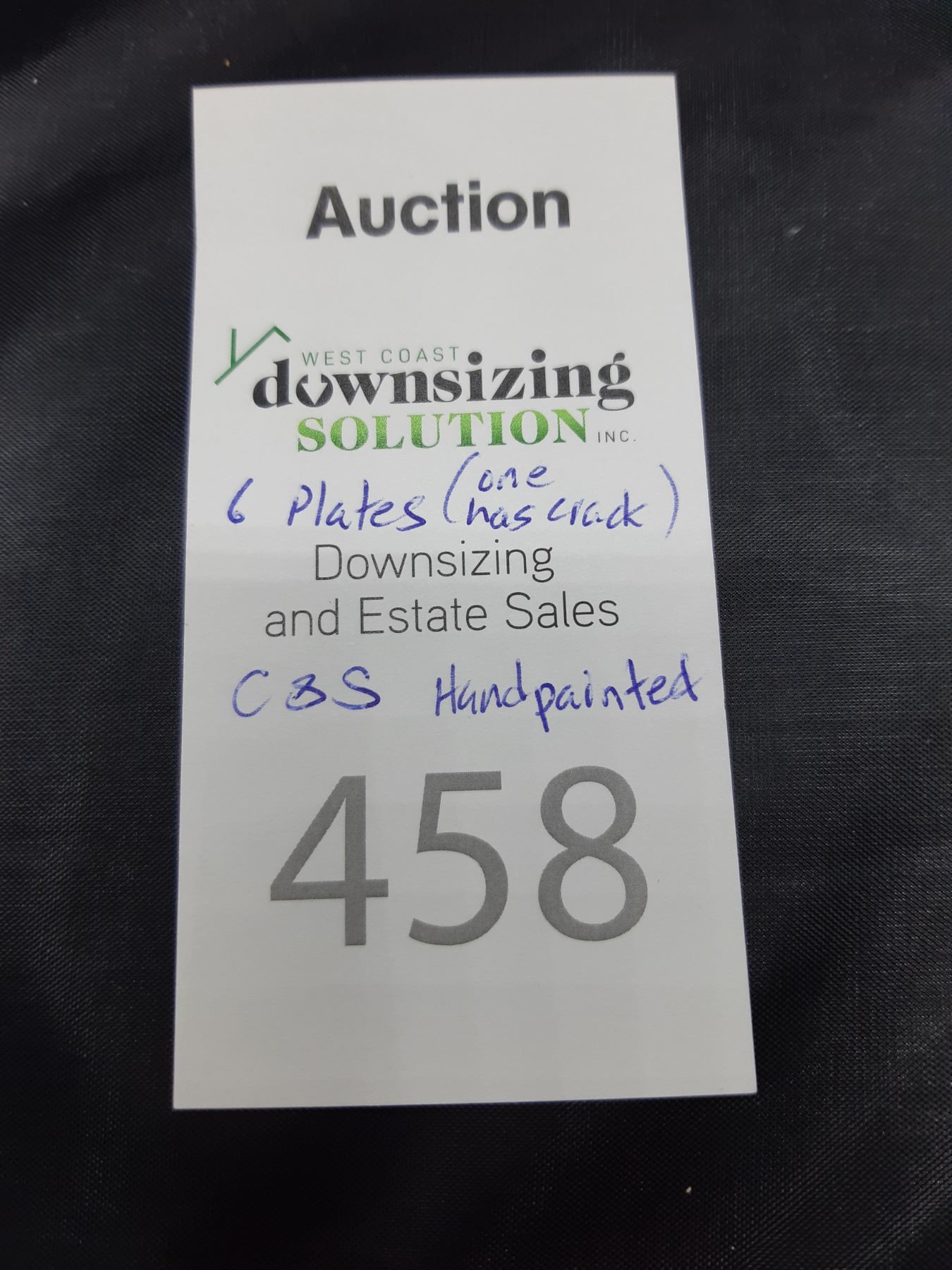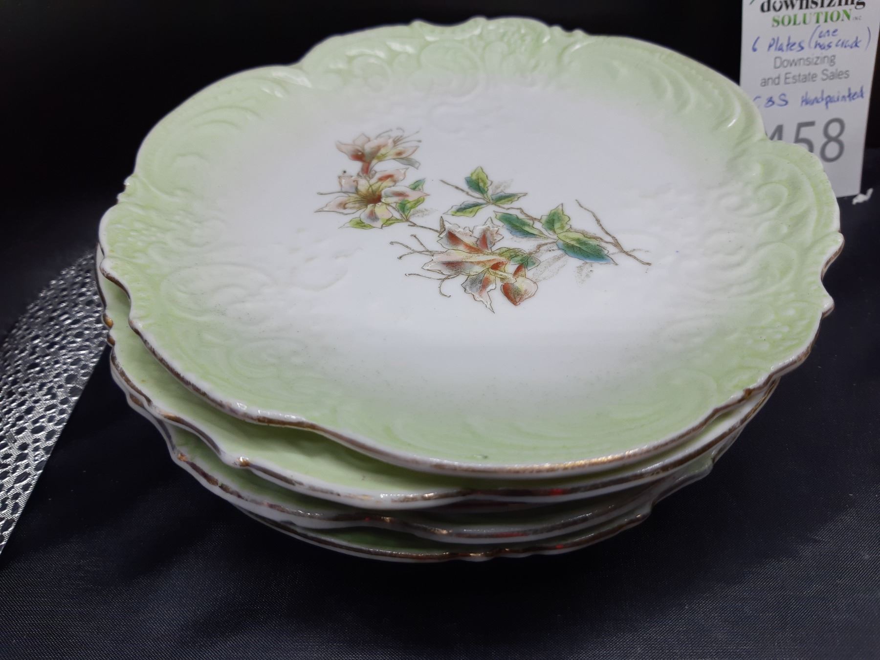 6 plates, note one has a crack and cream & sugar. Bring packing materials and pickup at 10 am