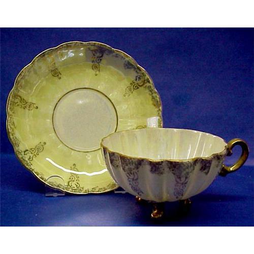 Lovely set: cup and saucer, Made by famous Shafford China.All hand painted an finished in gorgeous luster finish, Eggshell thin fluted cup standing on 3 golden feet and adorned with fancy golden handle.DIVINE! - US Buyer please pay 8.30 for insured shipping.Thank You for looking!