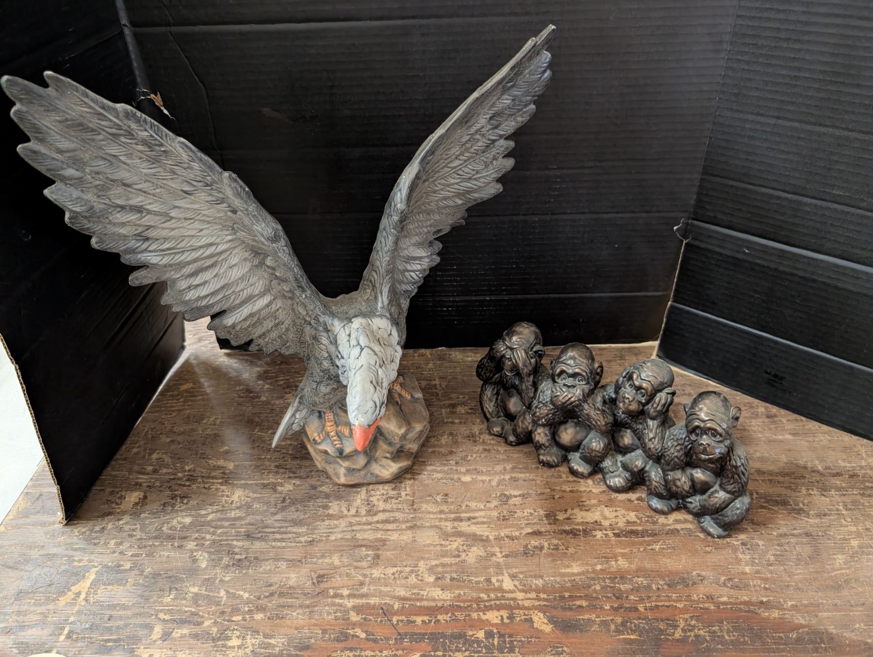 Hand Painted Eagle Statue and Line of Monkeys Statue (good Condition)