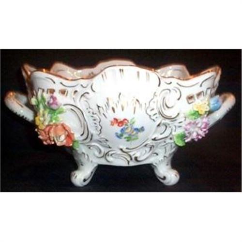<tr><td>Title:Hand Painted Floral Dresden Two Handled Bowl</td></tr>