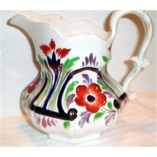 This extremely lovely Hand Painted Soft Paste Porcelain Pitcher or Jug is decorated with a floral design and uses both Copper Lustre and Pink Lustre in the decoration. The pitcher is in SUPERIOR condition with no chips, cracks, dings or hairlines and it measures 7.25" from spout to handle and is about 4.25" in diameter and stands 6.25" tall. It is unmarked on thebottom but definitely of English origin and can be dated to about 1850. Don't let this piece of History pass you by.