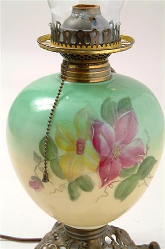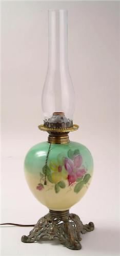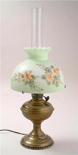 (American early 20th Century) Hand painted with floral motif and brass décor, approx, 45" tall each.
