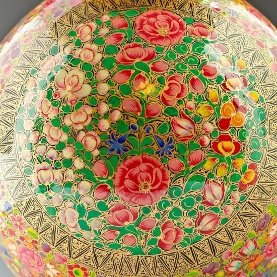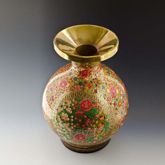 Hand Painted Indian Vase, Dimensions: 12in (H) X 7in (D), Material: Papier Mache, Brass Lining