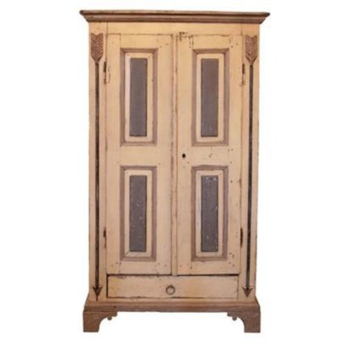 Italian armoire with marblized detail on the door panels and arrow motif, from Citta del Castello.