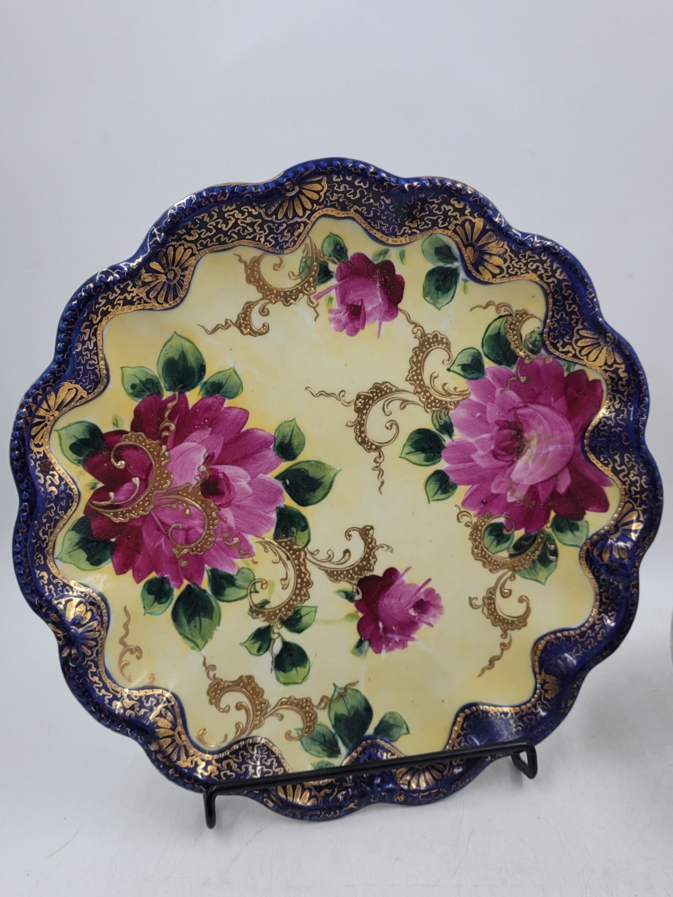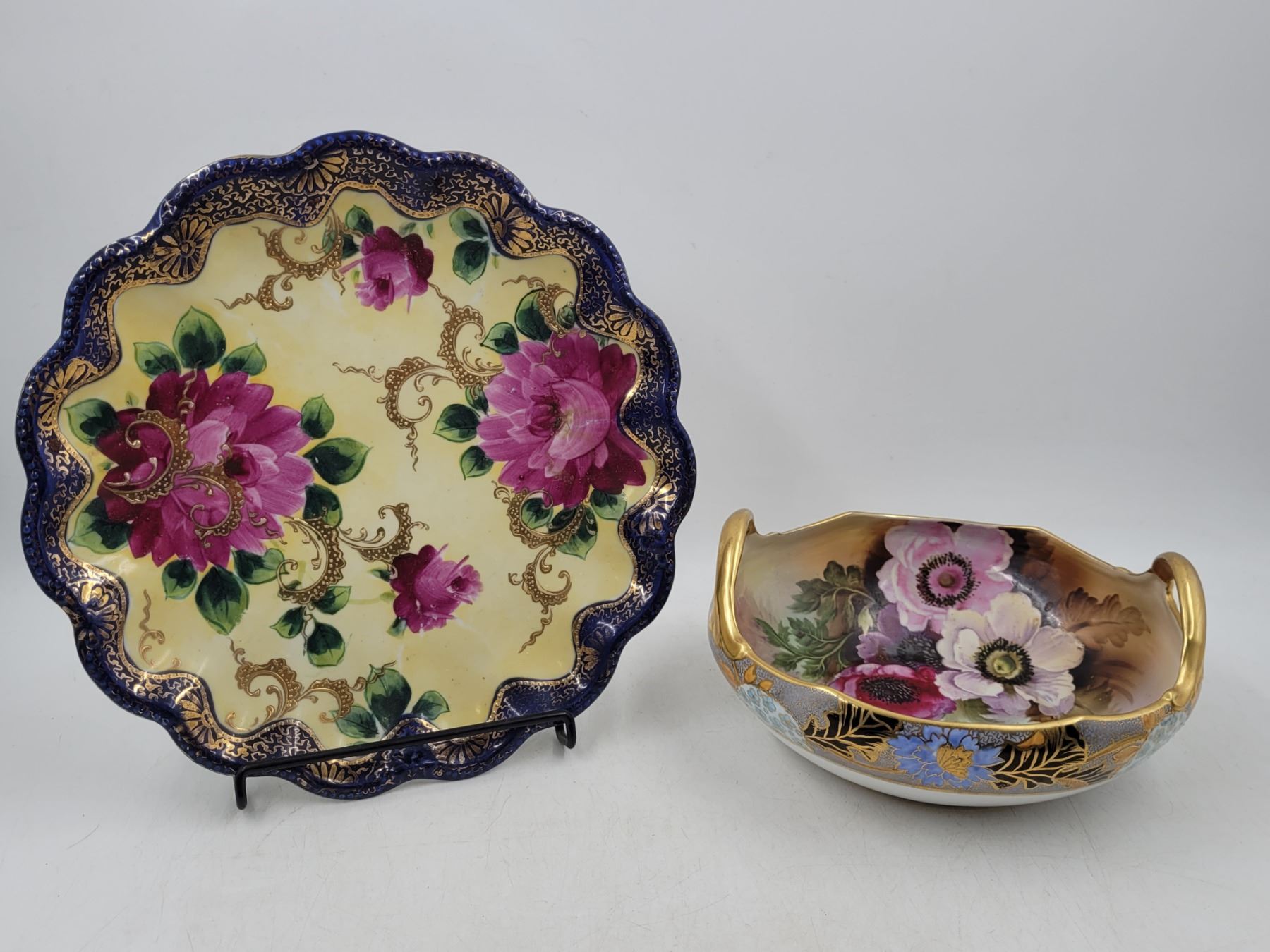 Hand-Painted Japanese Noritake Bowl & Ruffled Plate