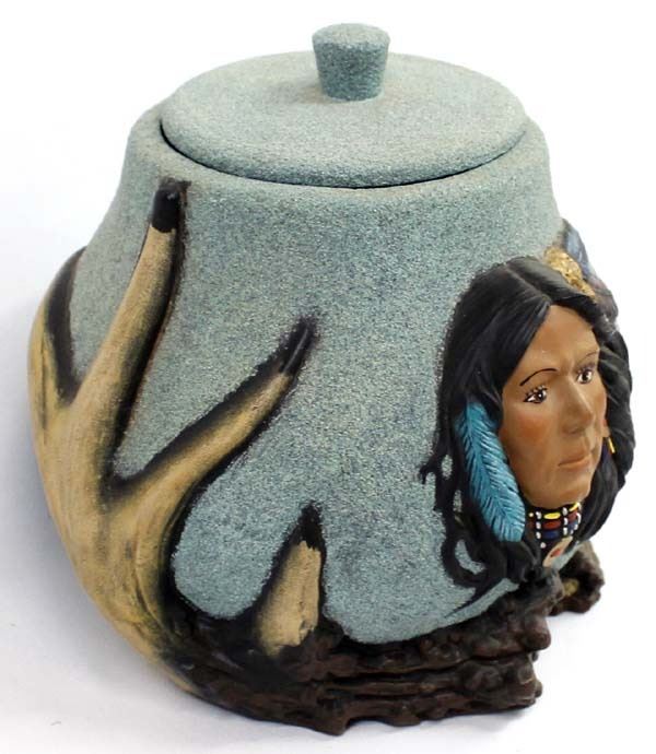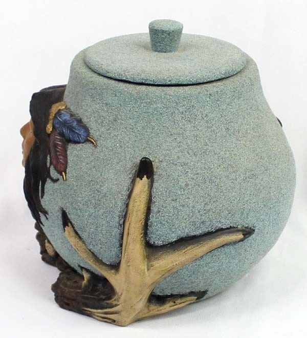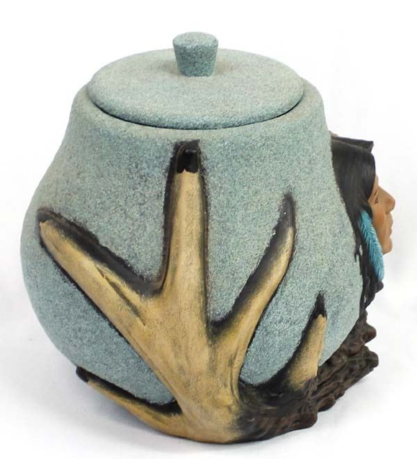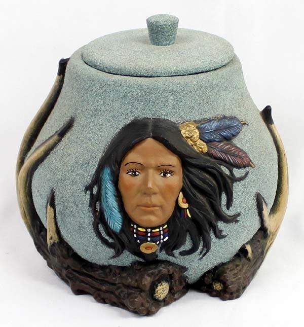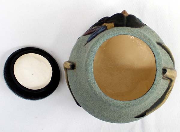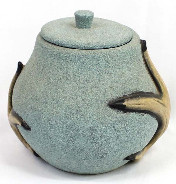 Hand Painted Lidded Ceramic Pottery Jar measures 8" x 8"