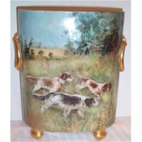 <tr><td>Title:Hand Painted Limoges Dog Footed Cachepot</td></tr>
