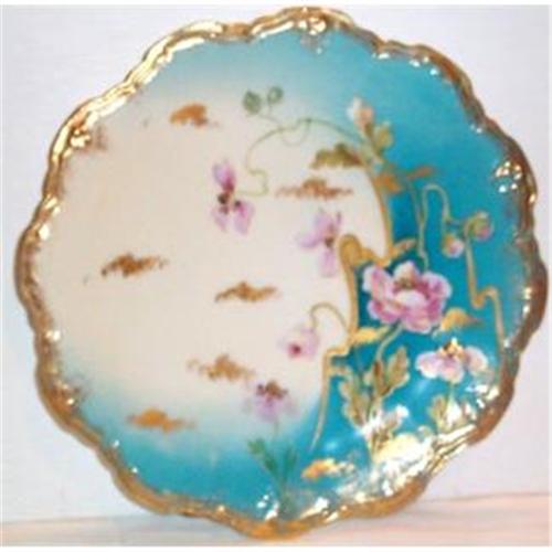 This STUNNING Hand Painted Limoges Plate is decorated with lovely blooming lavender/mauve colored poppies on a wonderful blue background and then gilt with gold. The plate is in SUPERIOR condition with no chips, cracks, dings or hairlines and it measures 8.75" in diameter. It is marked on the back with the familiar Limoges Logo.