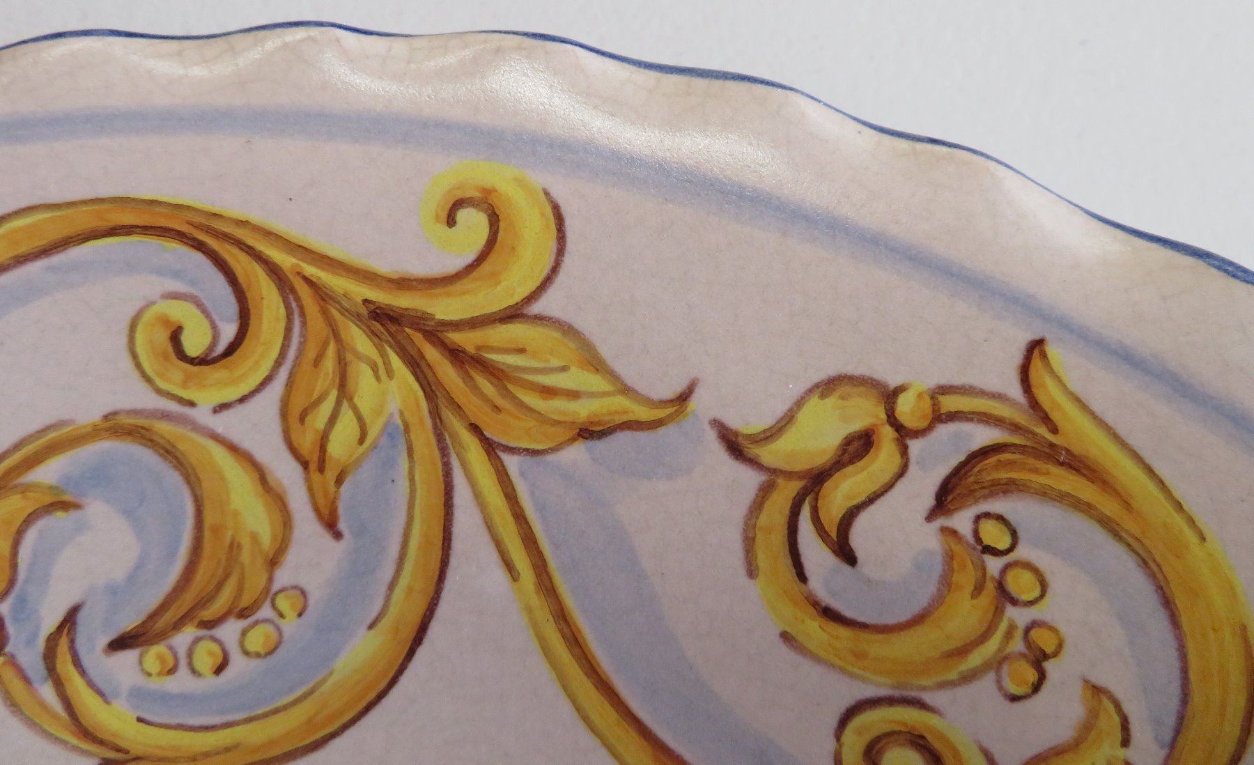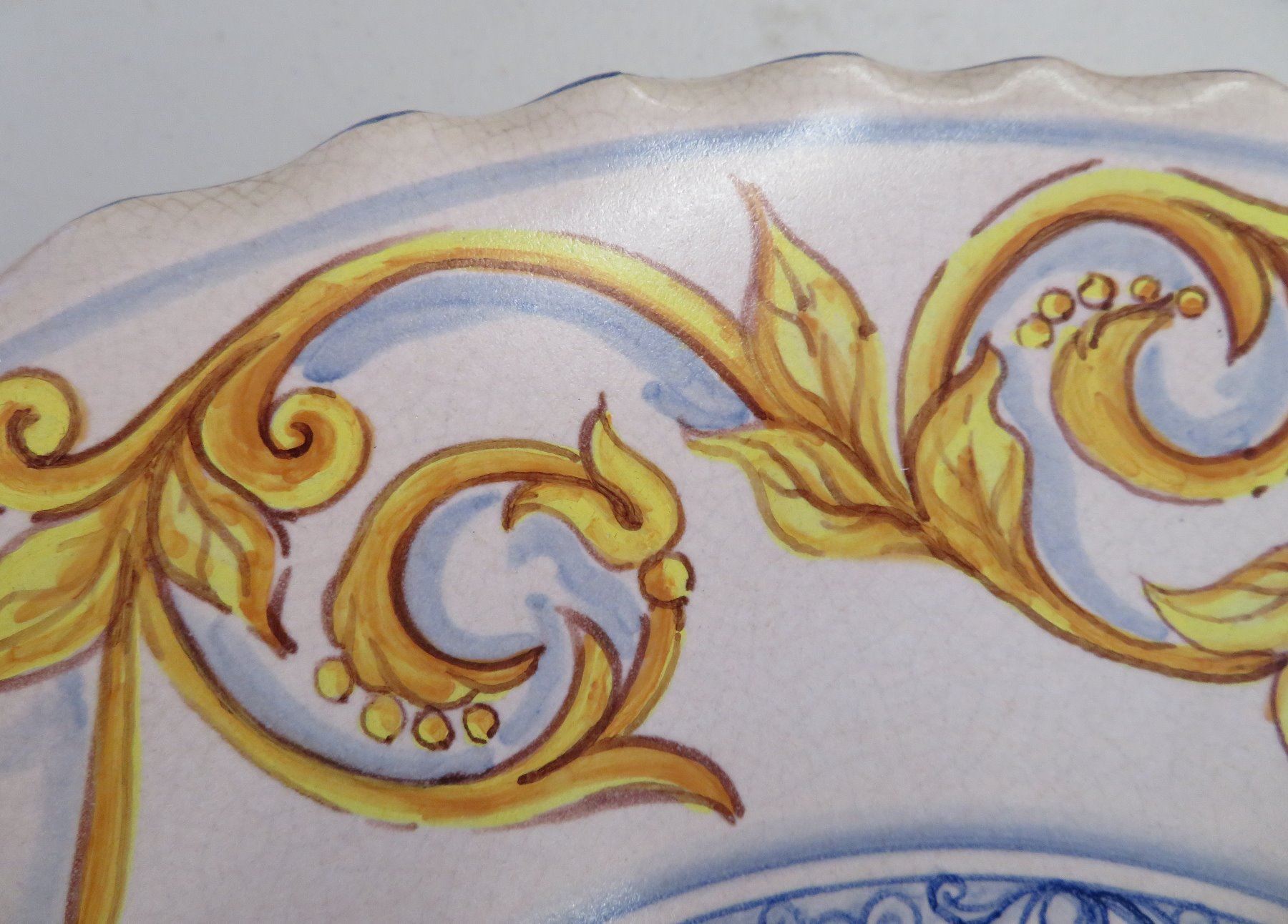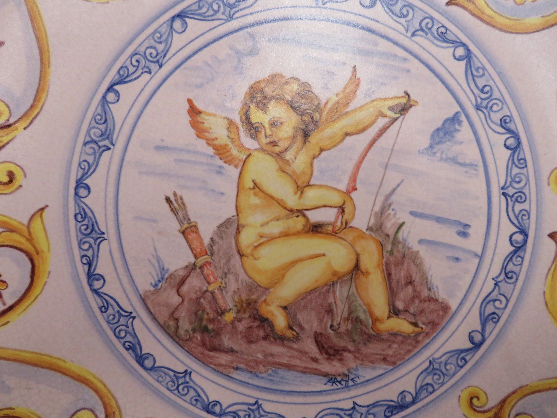 Hand Painted Majolica, early 20th century. Made of porcelain, the item measures 15" x 2". Italy. Condition: Good, see images. Shipping: $40.00 w/insurance and signature, double-boxed, due to value.