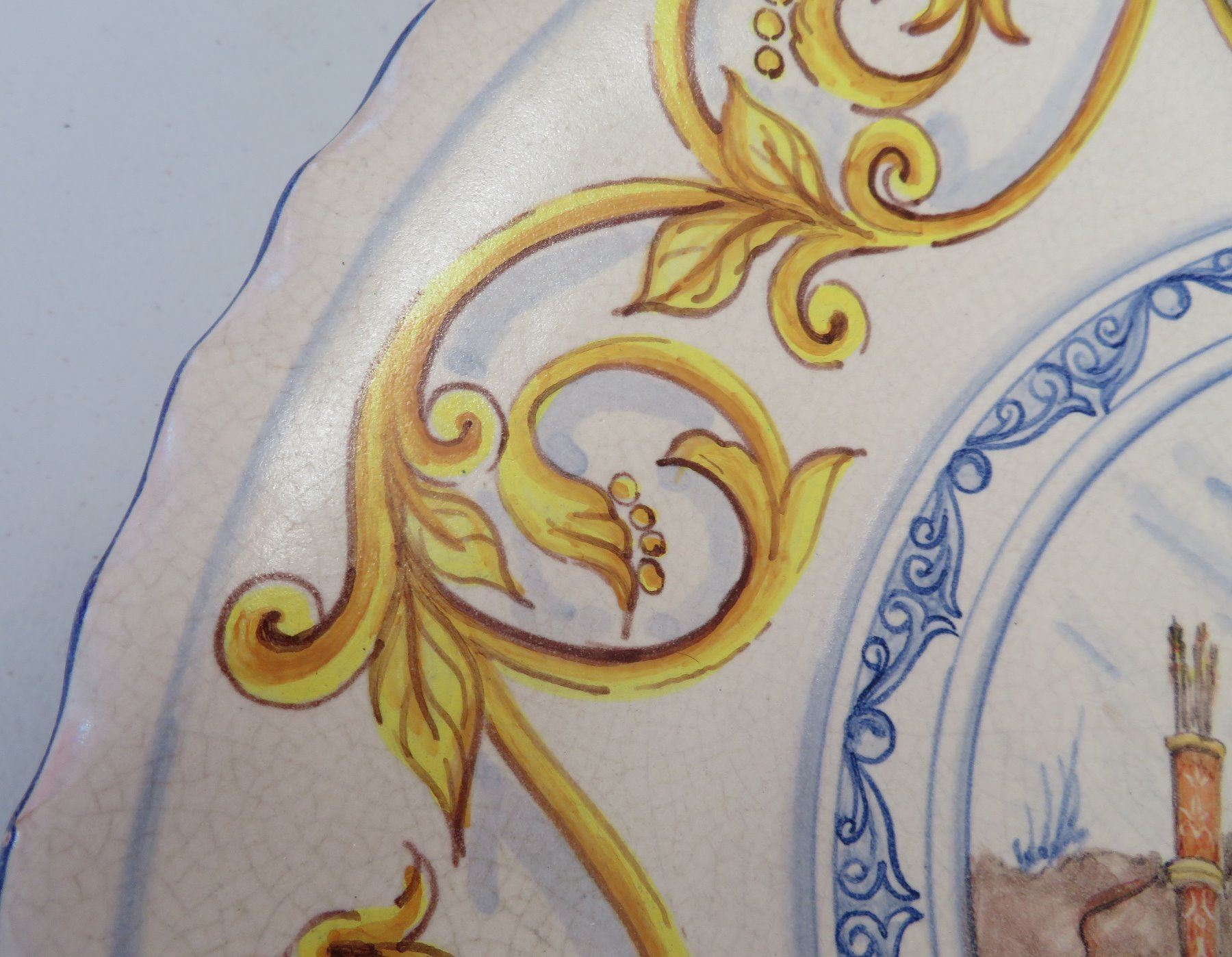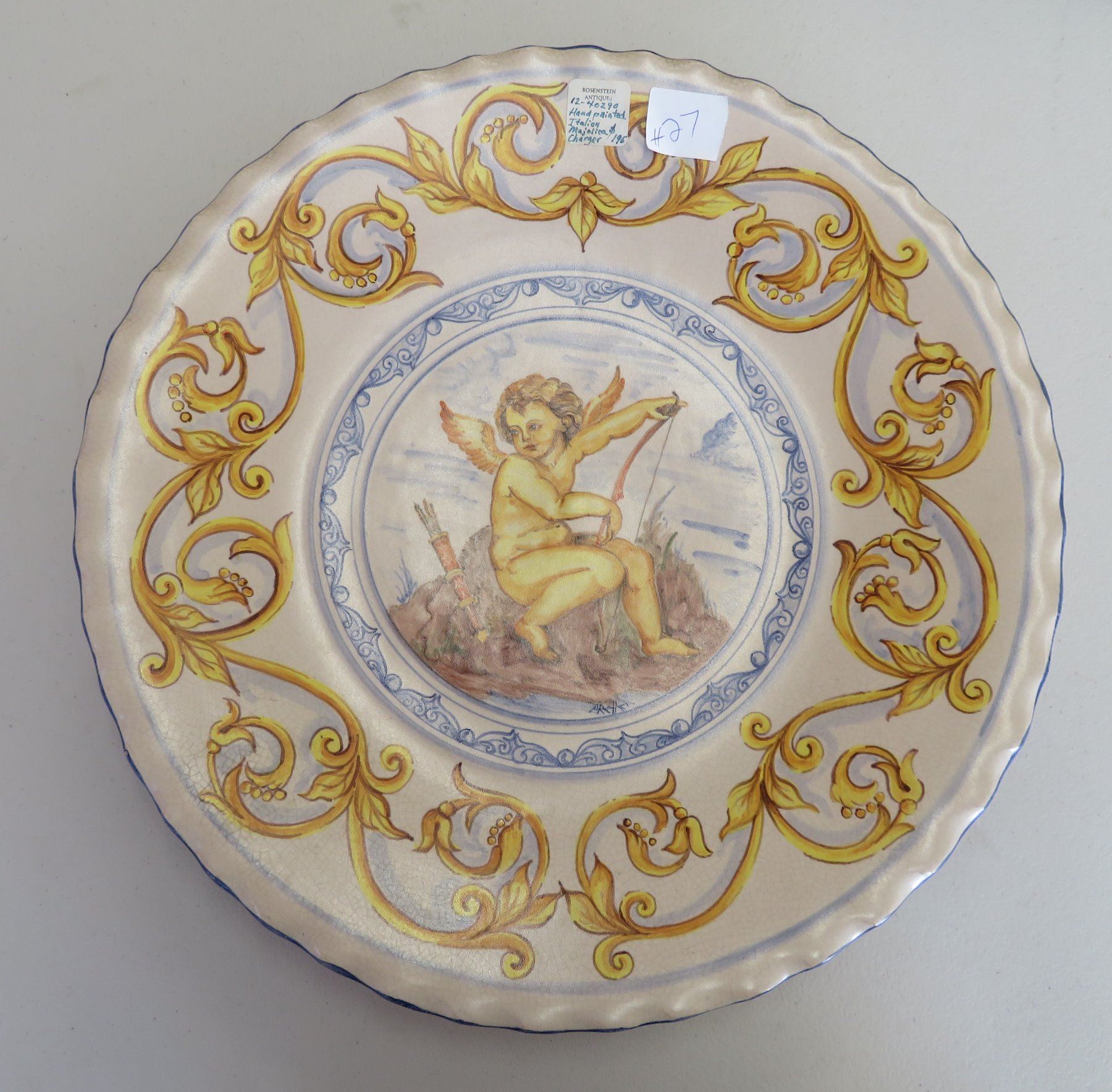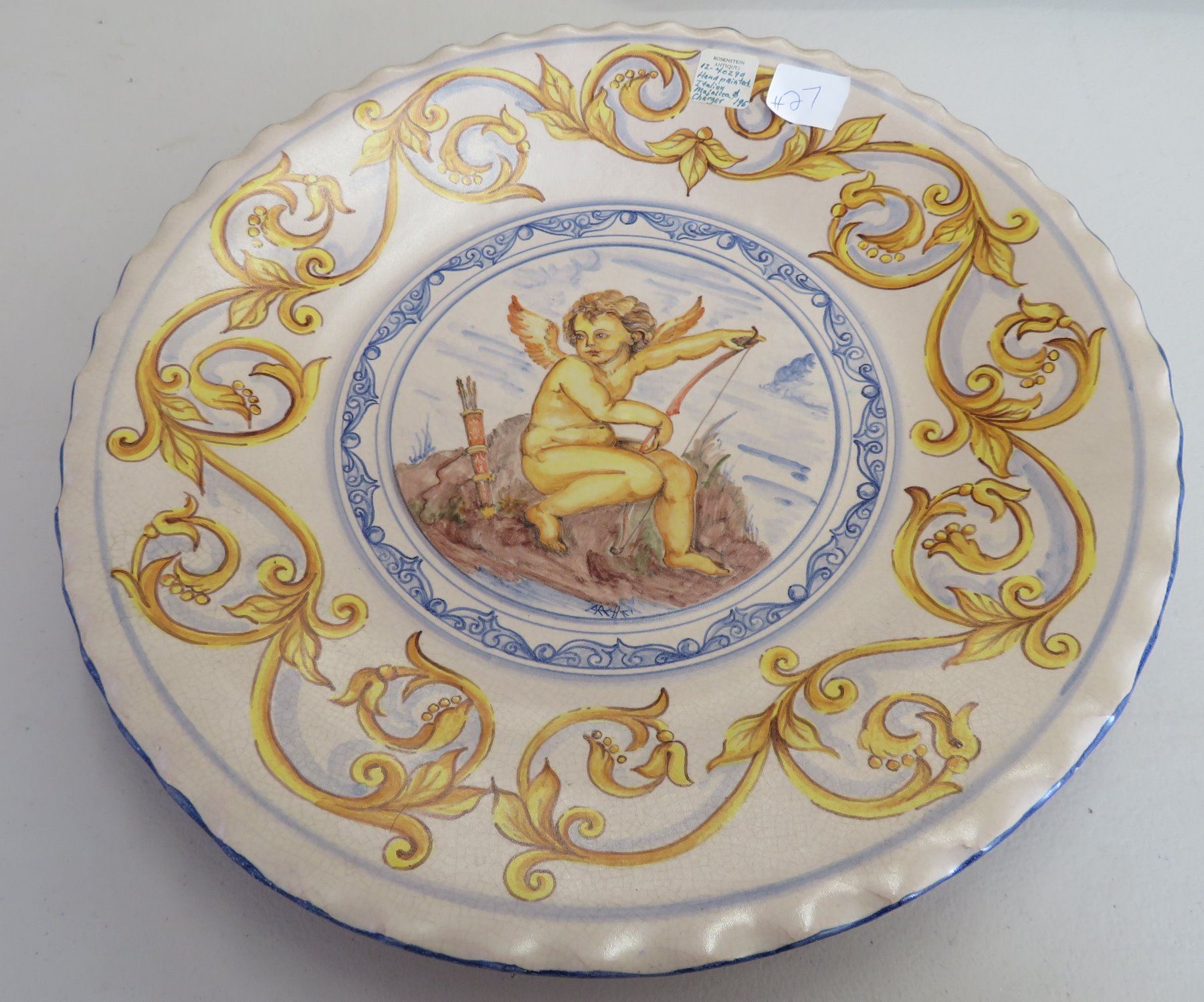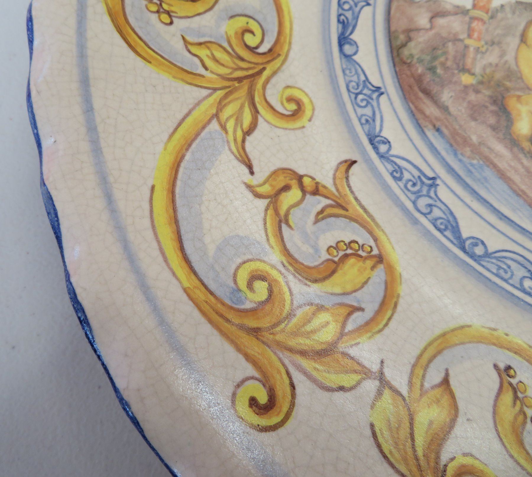 Hand Painted Majolica, early 20th century. Made of porcelain, the item measures 15" x 2". Italy. Condition: Good, see images. Shipping: $40.00 w/insurance and signature, double-boxed, due to value.