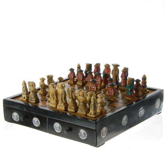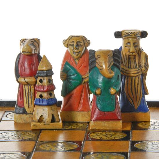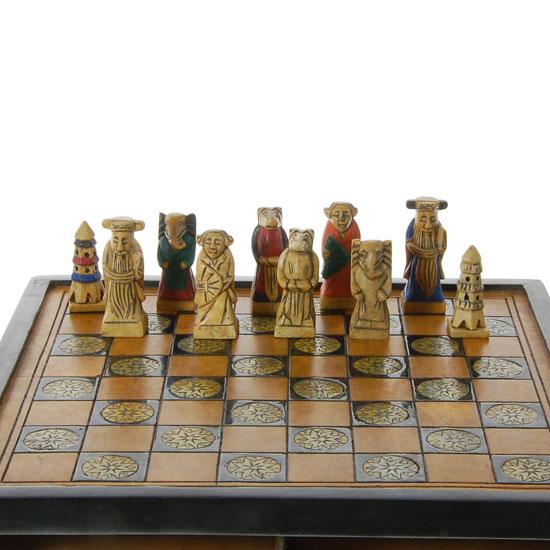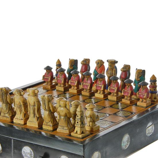 Excellent Inlaid Marble; Brass & Mother of Pearl playing board/storage box; Compass Rose Design; 10.5"x10.5". Playing pieces handcarved marble; largest piece 2.25".