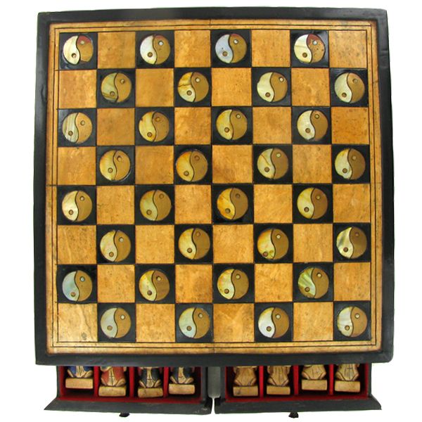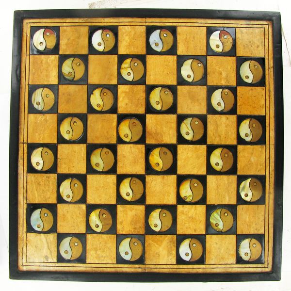 Excellent Piece; Mother of Pearl; Yin Yang design; largest pieces 3"; marble playing surface 12.5"