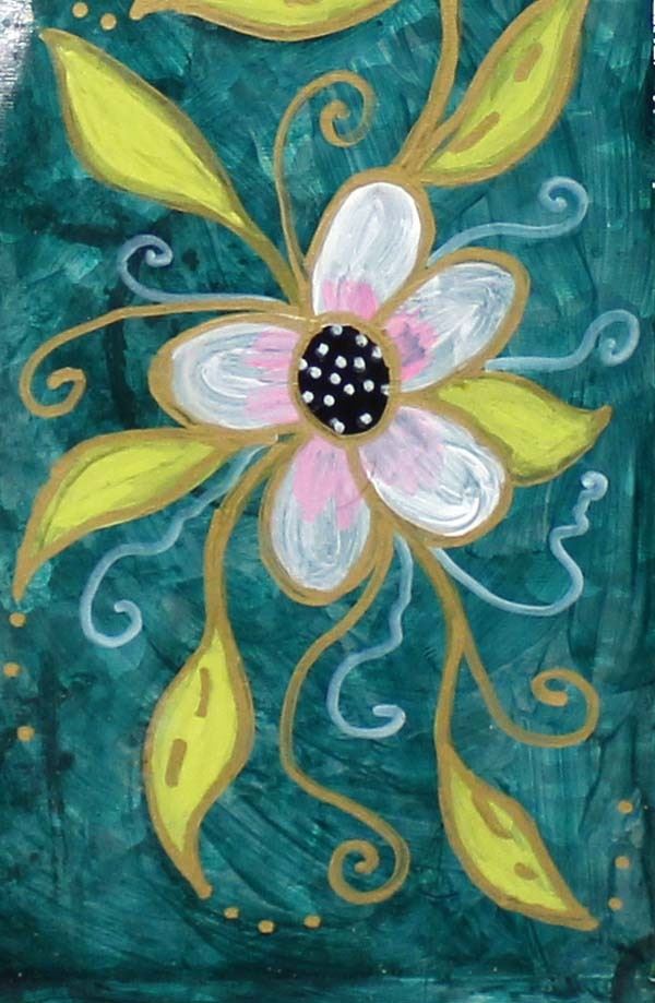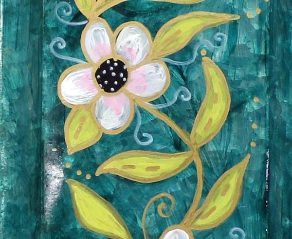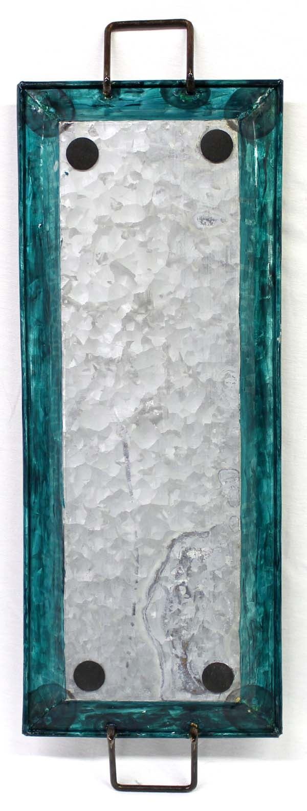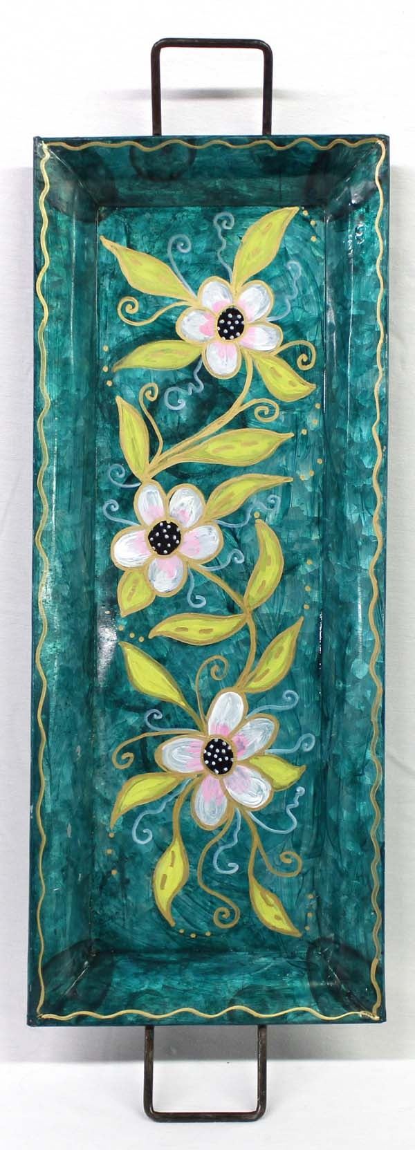 Hand Painted Metal Tray by Kathy's Creative Designs, measures 26''L x 9''W x 2.5''H, double handles, pretty pink and white flower and green leaf motif