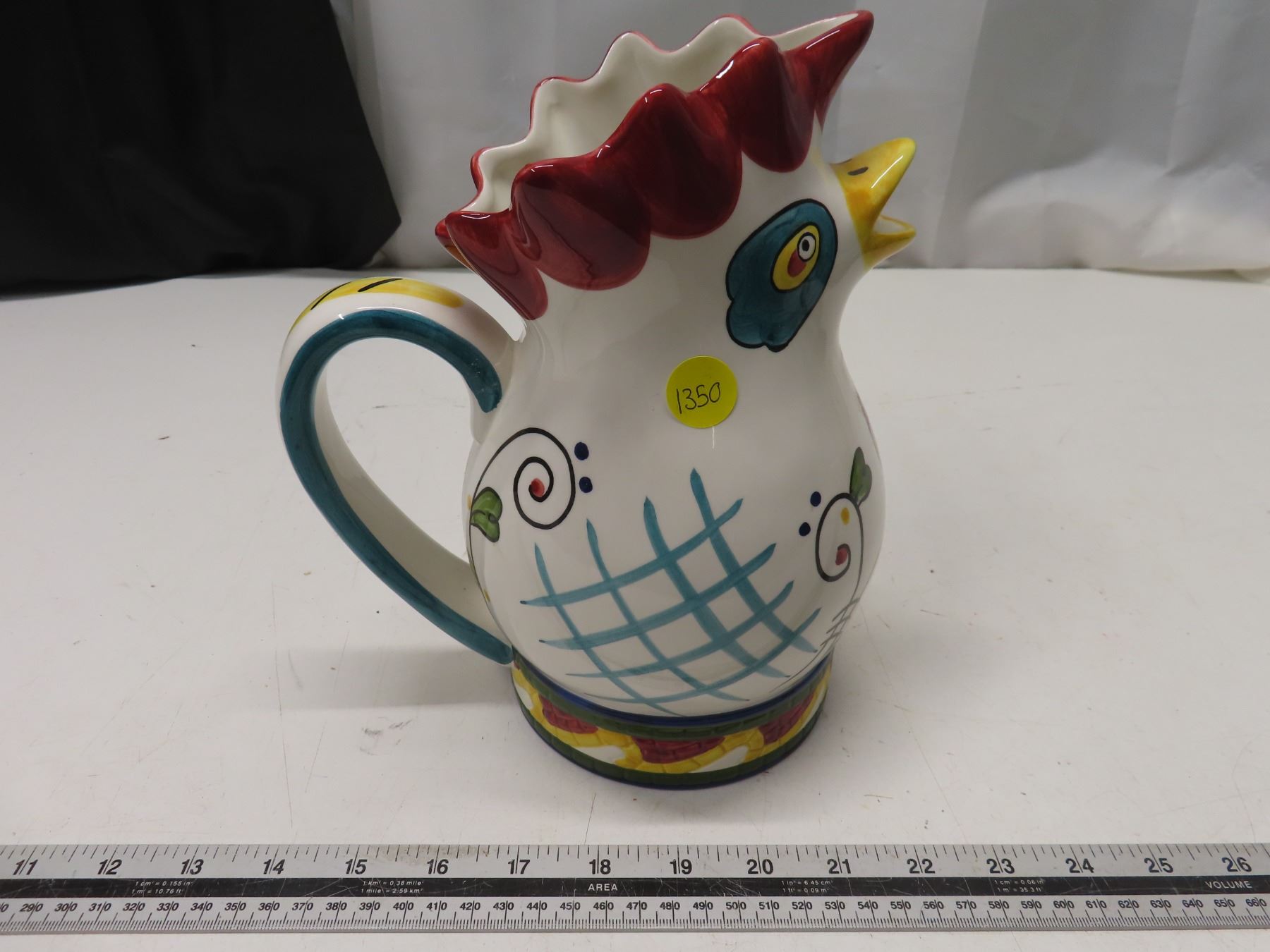 Hand Painted "Mosaic Rooster" Pitcher/Jug
