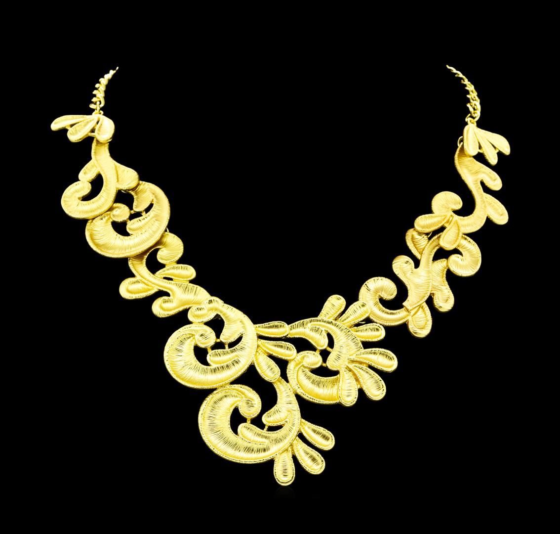 High end designer jewelry. Hand Painted Necklace - Gold Plated. Gold Plated Chain/3" Ext Clasp. Gold. 16inches. Total Weight: 67.6 grams.